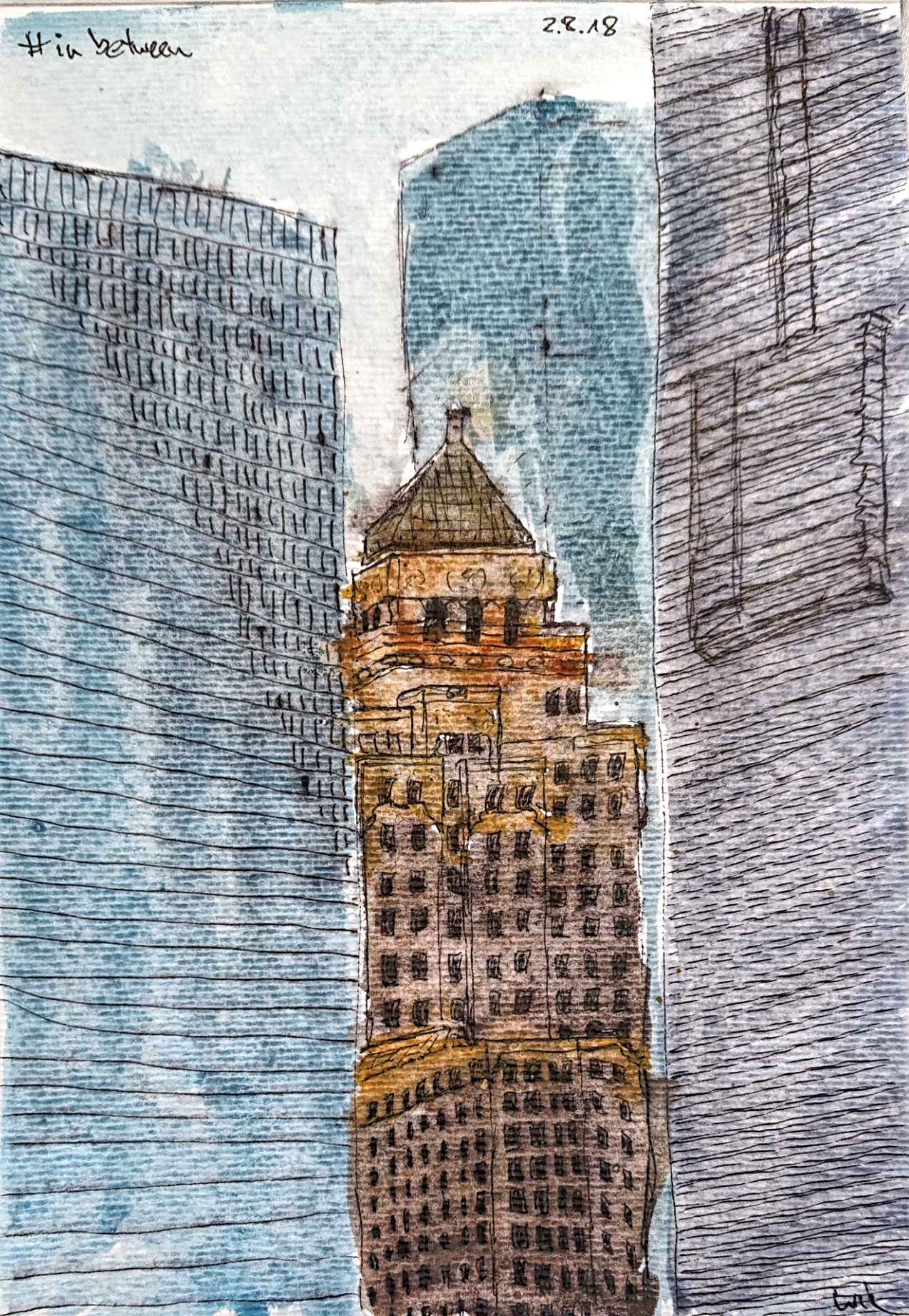 Urbansketches: #18 Vancouver - in betweenlillliputt (47)in #art • 8 years ago Why do I love Vancouver? Even if it isn't as old as european cities by far, the skyline integrates old and new buildings into a very interesting mix. This is just one example, I could have drawn many more. all pictures and words done by the author. #travel #vancouver #urbansketching #skyscraper