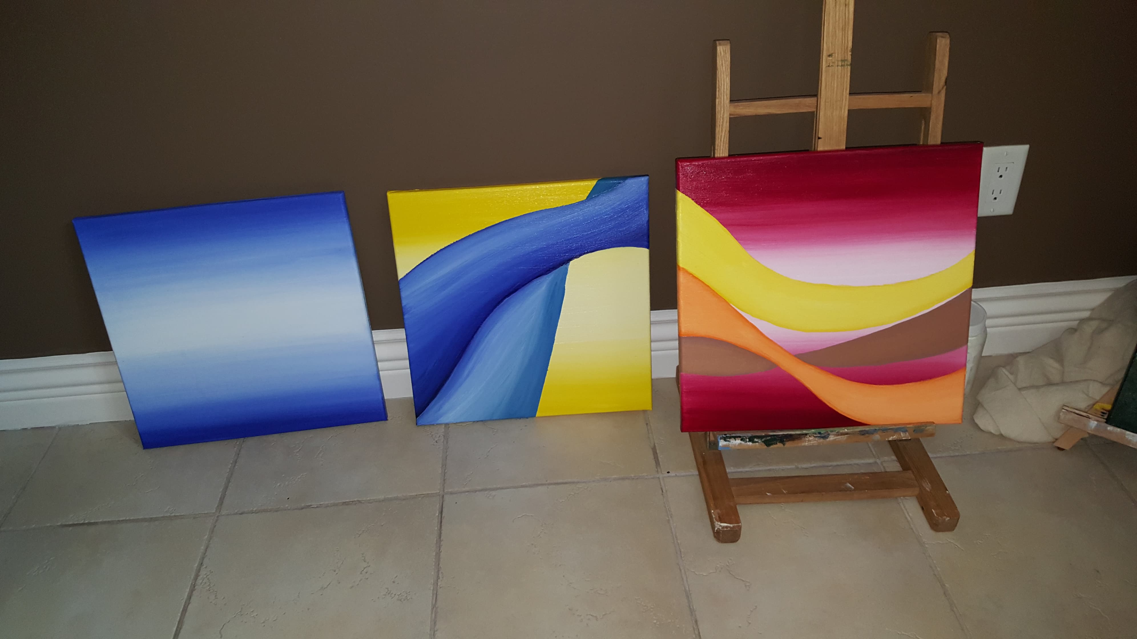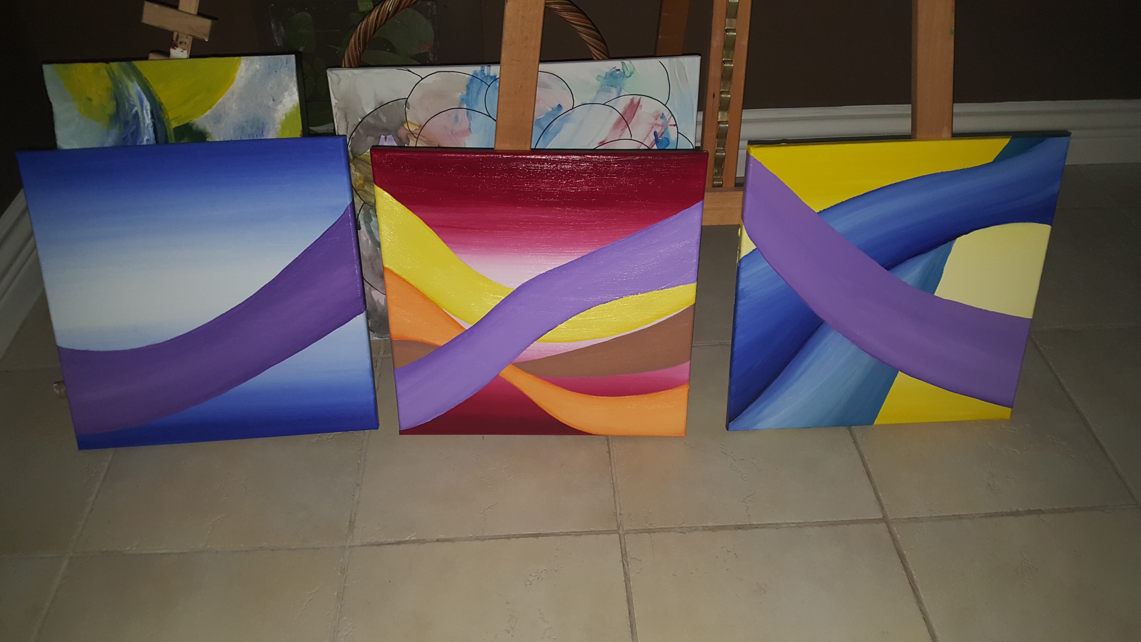 3 Abstract Oil Paintings - A work in progress.lmarko (40)in #art • 8 years ago (edited)They are a long way from being finished. Just thought I would show the process. Some of it is very rough but in the end I will have 3 very colorful paintings with flowing colors hung side by side on a dark chocolate brown back drop. #life #artzone