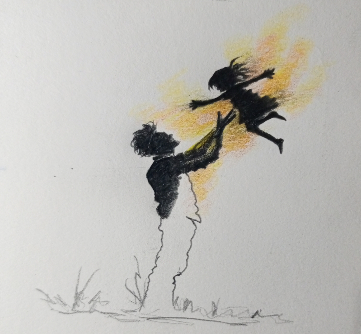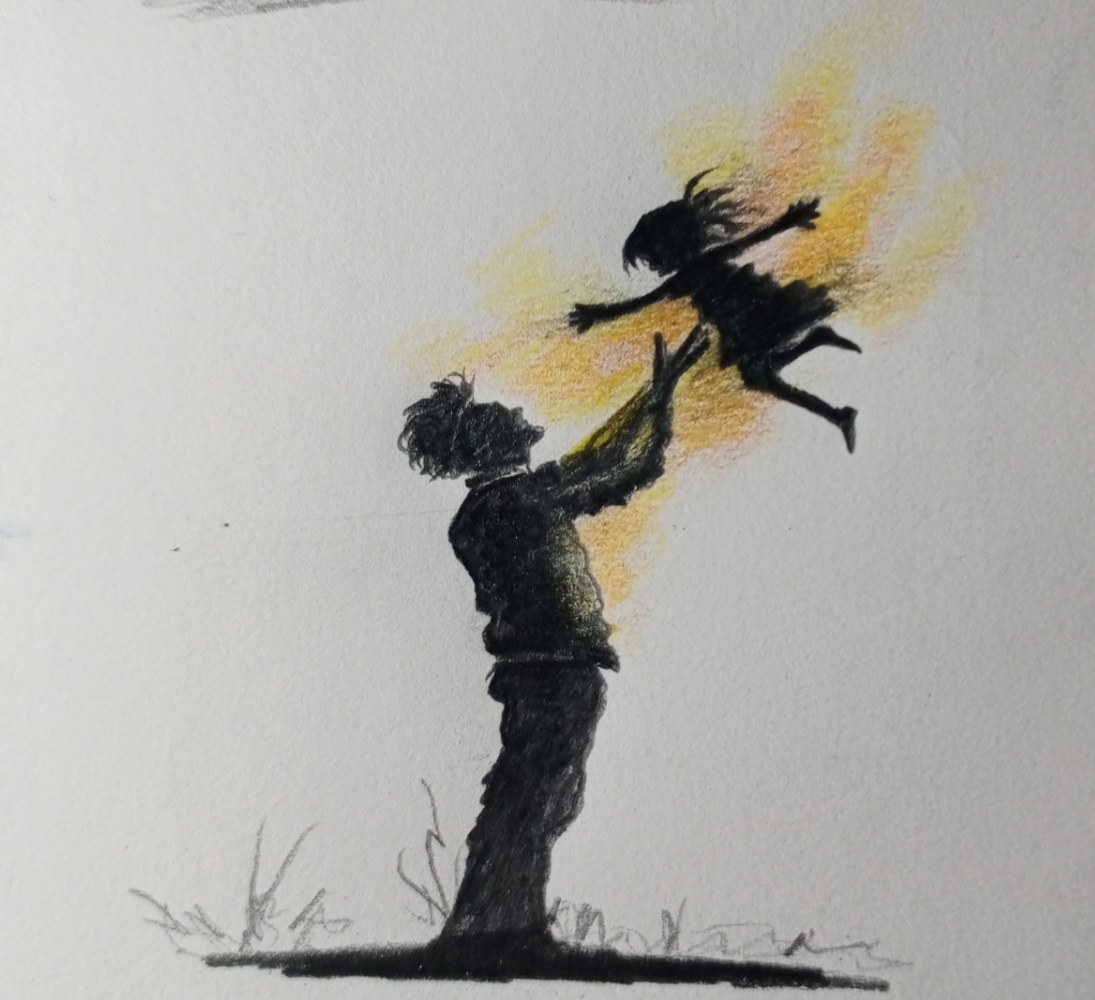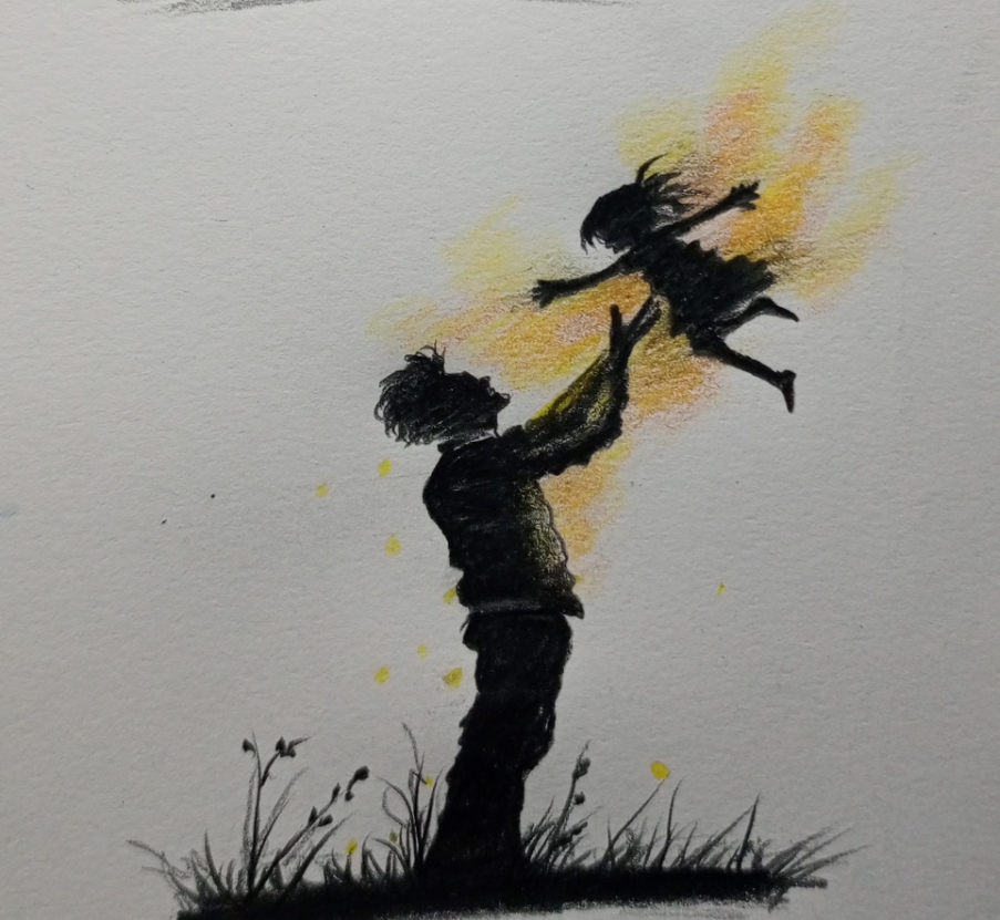 Good evening you all! This drawing is beautifully capture the pure Bond of love and trust, a father lifting his child towards the sky, as if handing to the light itself. The silhouette against the warm glow speak of safety, happiness, and the simple magic of togetherness.