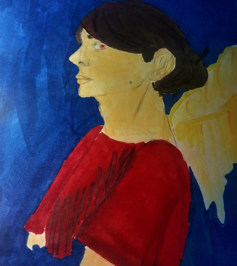 hello everyone, this is my first post and I want to tell you about myself and my characters. My name is Karina and I am 16 years old, I have been drawing not so long ago, but I already have three main and favorite characters. Bart - he is 17 years old and he is half an angel. In my universe, this is normal in the first place, but it hides it from everyone. Bart plays guitar and goes to extra biology classes, which is where my trio met.