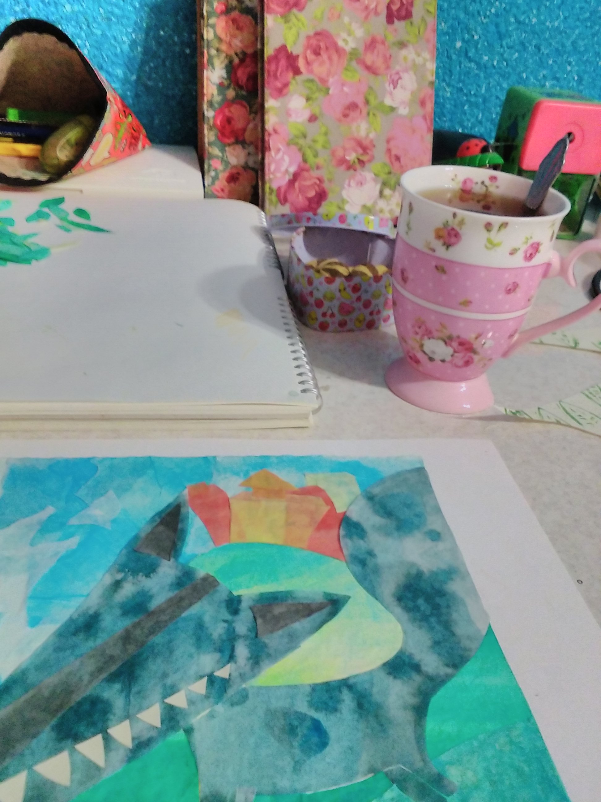 Doing work and drinking tea