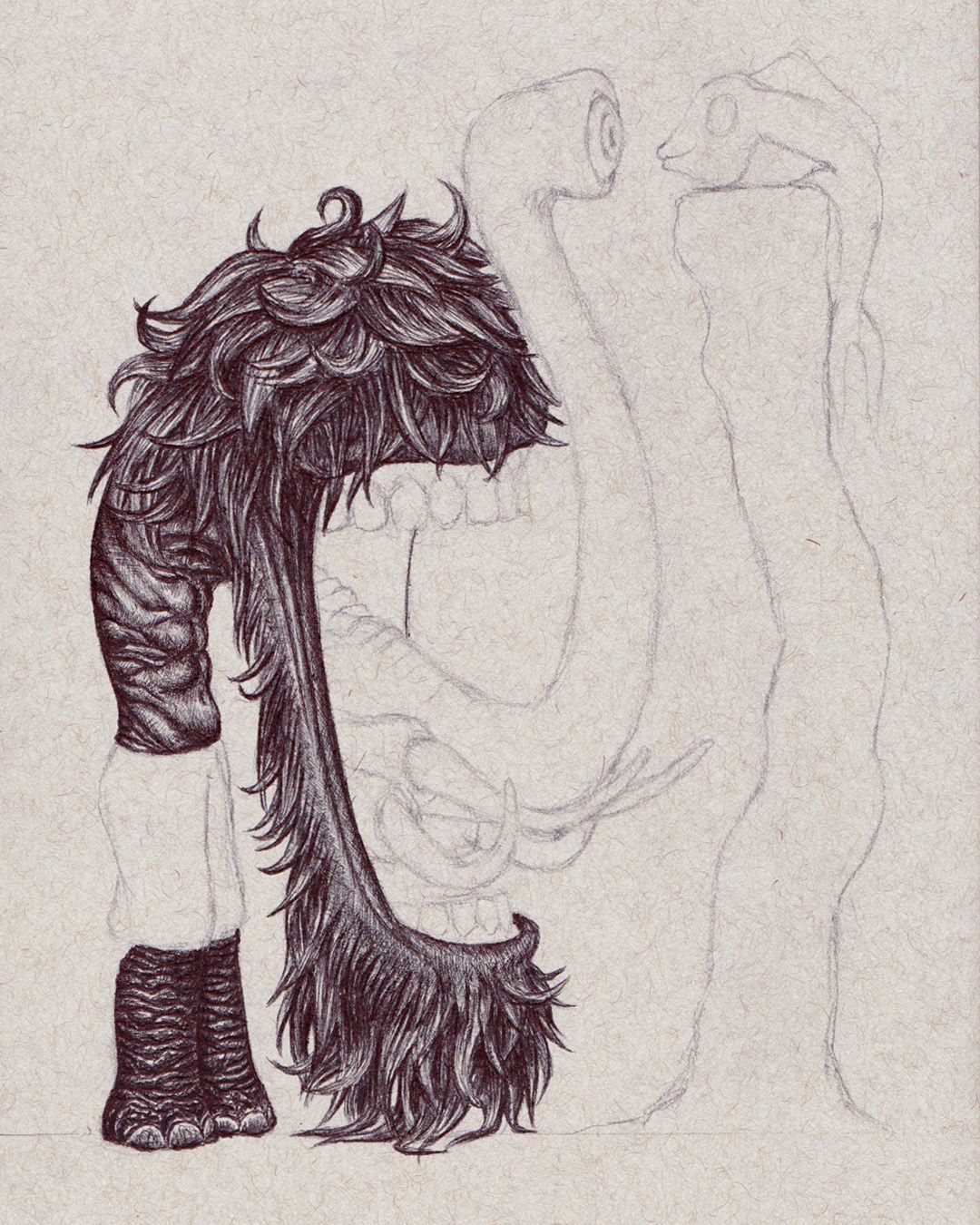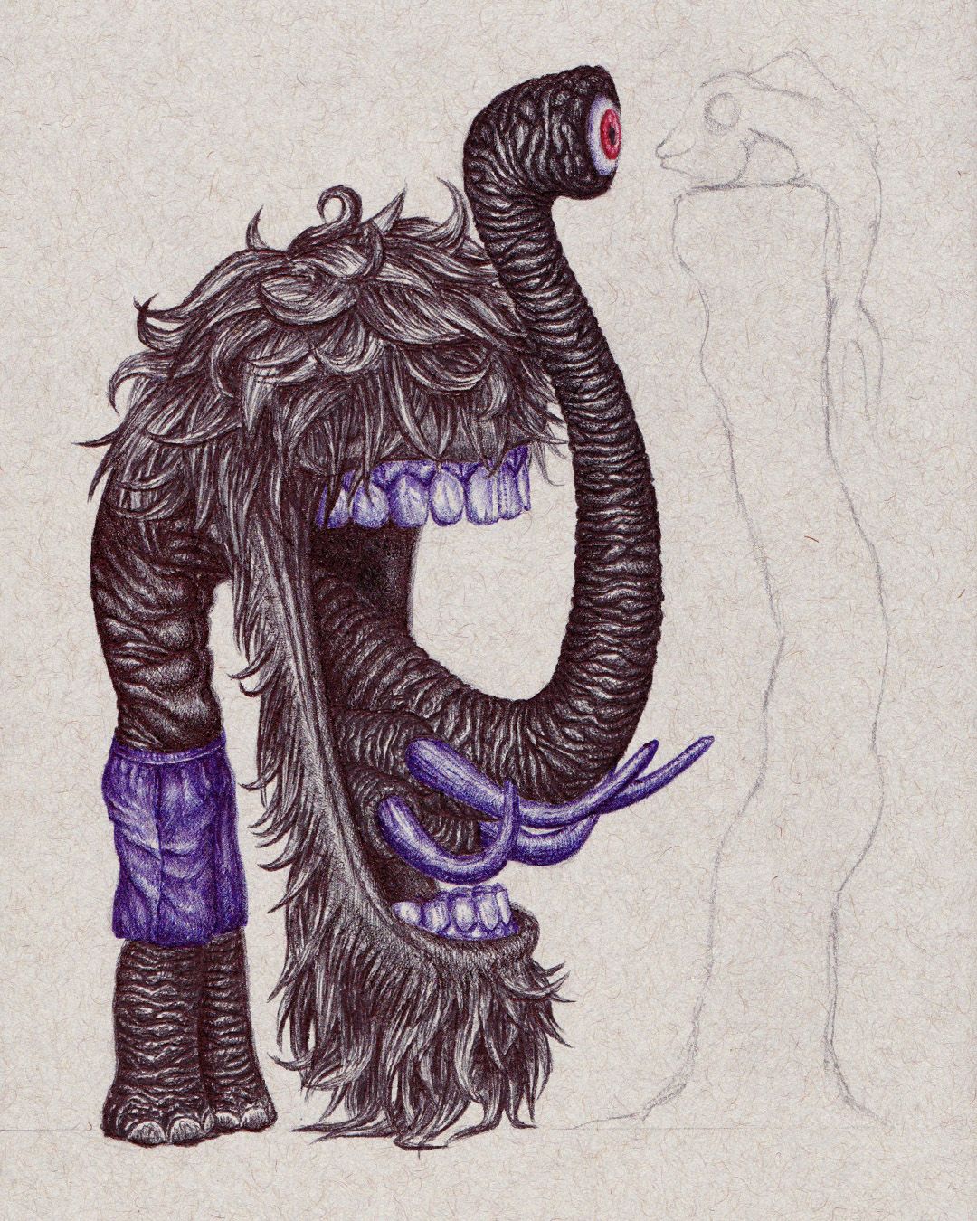 - These show the progress of filling out and rendering the trippy, humanoid, armless, shaggy-haired elephant man.