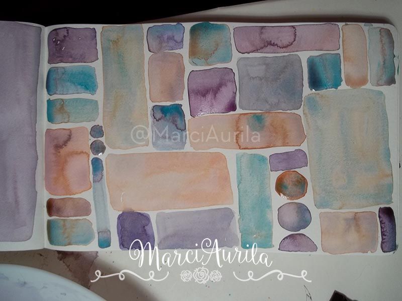 Often when I embark on a painting spree, I ultimately have leftovers on my palette. I dislike wasting it by simply rinsing it off, so I started using it up on odd or extra unplanned projects. Here's how I used some watercolor leftovers.
