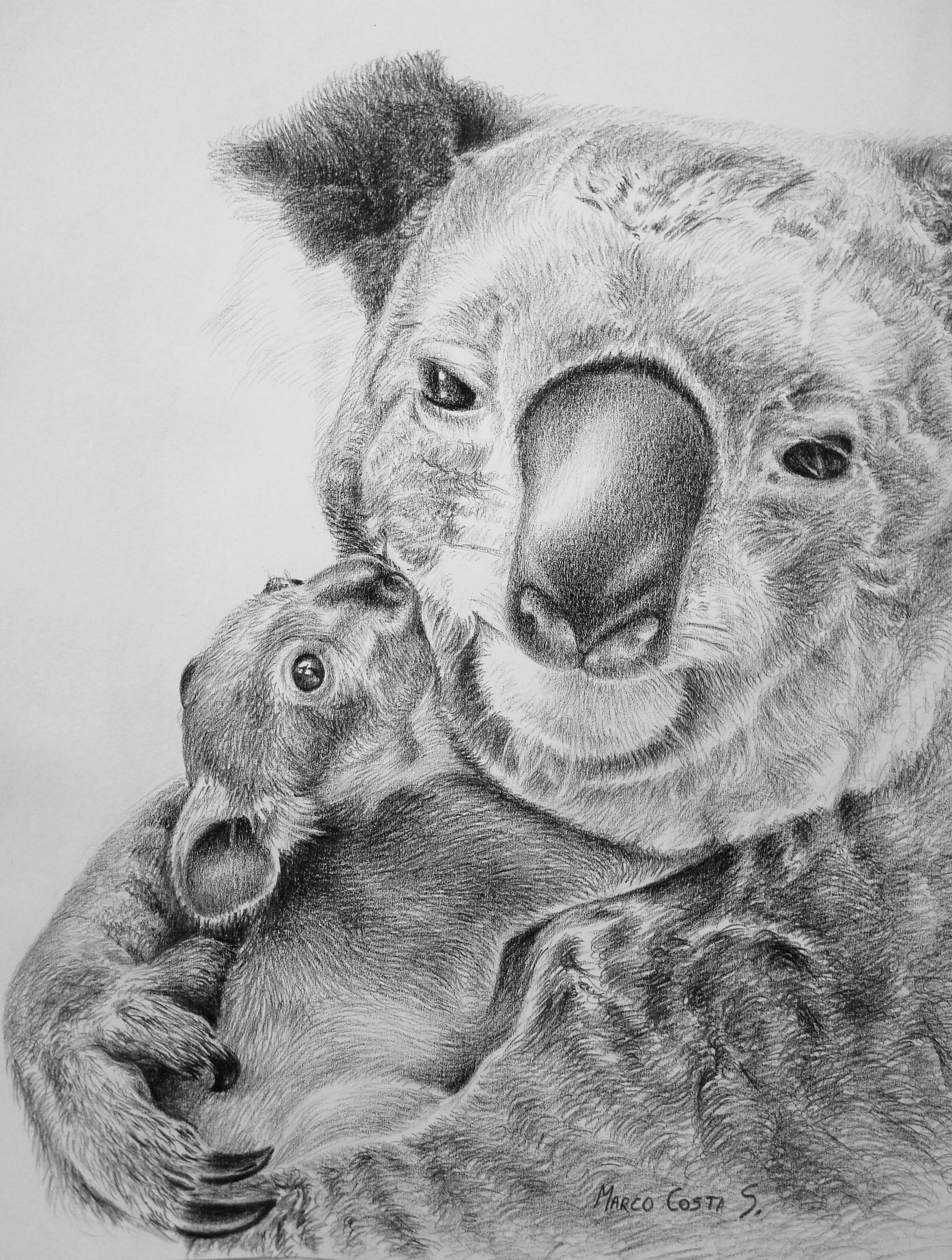Hi Marco, that is such beautiful drawing, so cute baby and such loving mother koala.