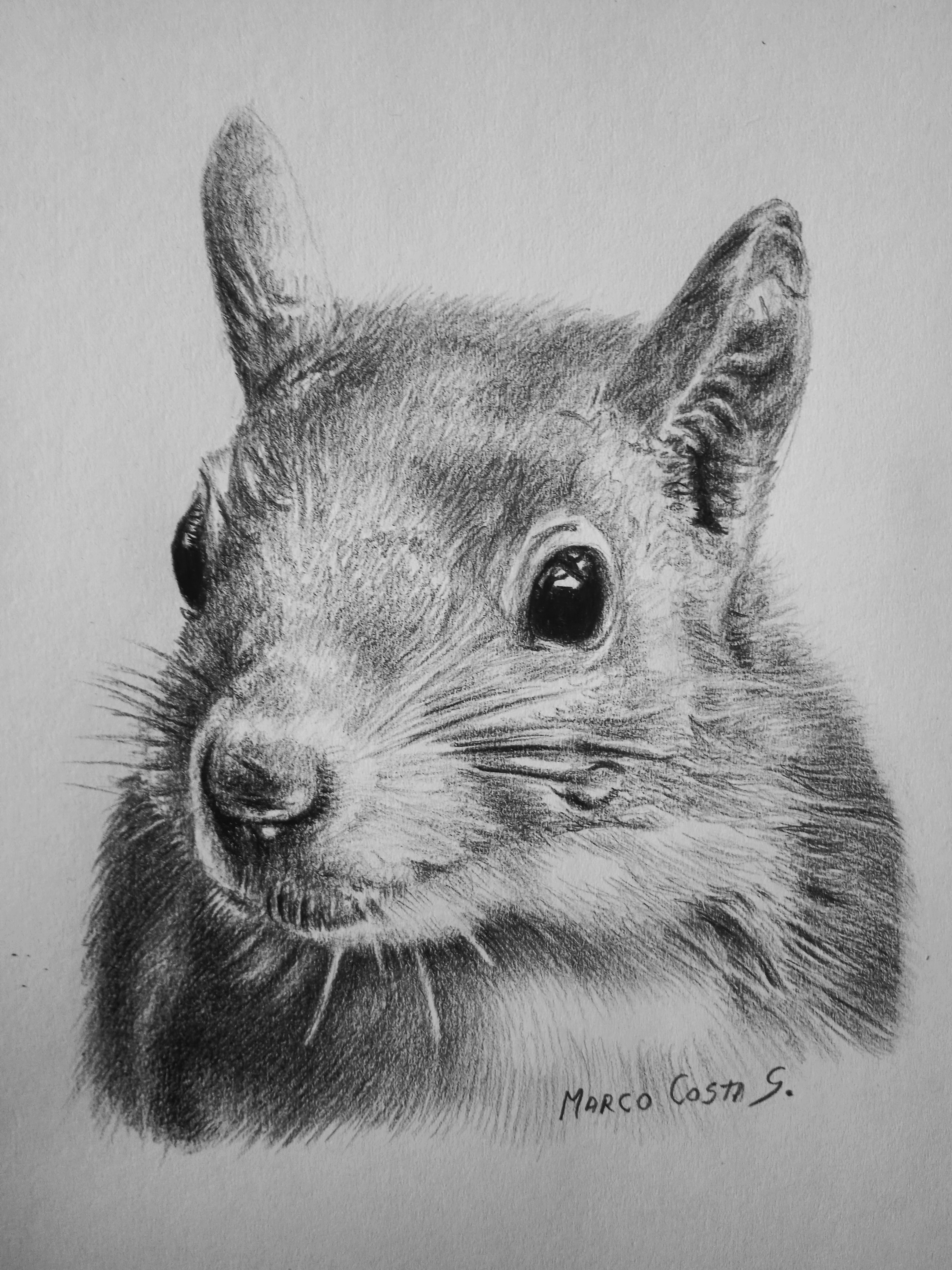Hello friends! Thank you for appreciating my work, Today I want to publish the sequence of the drawing of this friendly living being, a beautiful specimen of squirrel that motivated me to make it in lines, a drawing made with charcoal pencil. I hope you like it!
