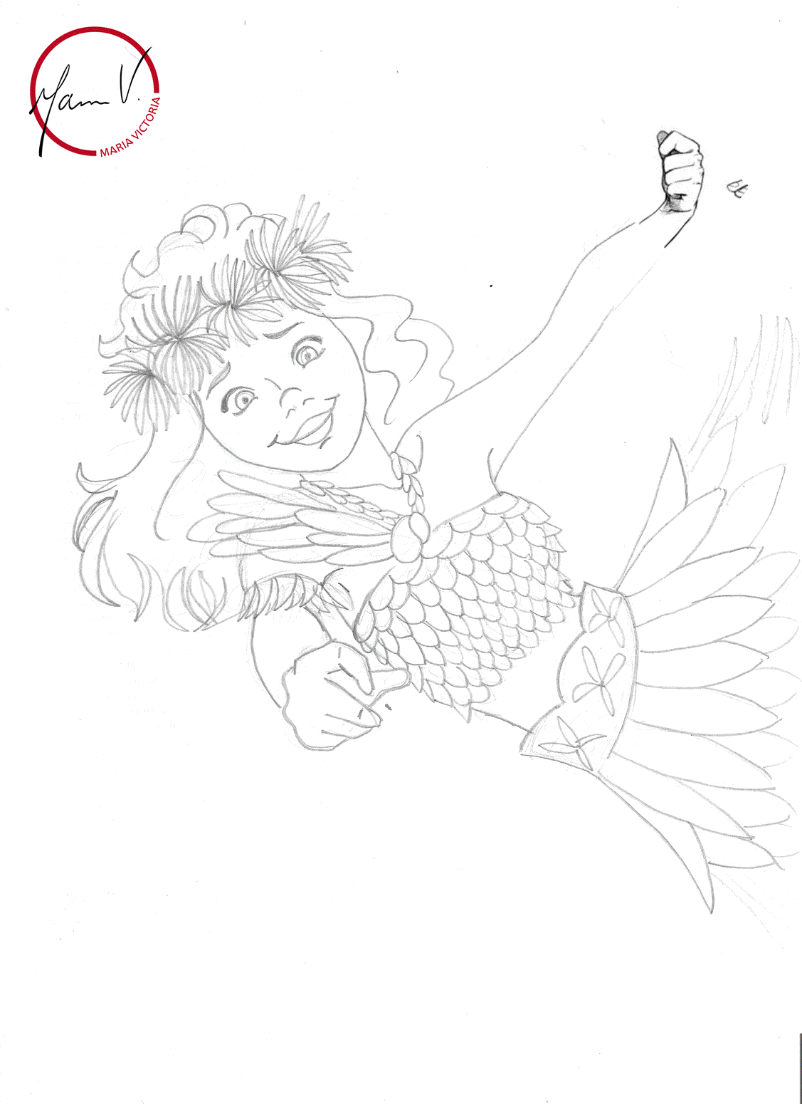 Start with a handmade sketch that I then scan to make the line art in digital, and then I added color and details.