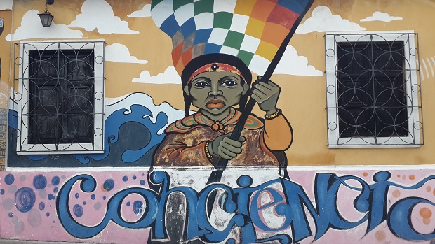 Este es un mural muy llamativo, tanto por sus colores y su pintura así como su mensaje "Conciencia"