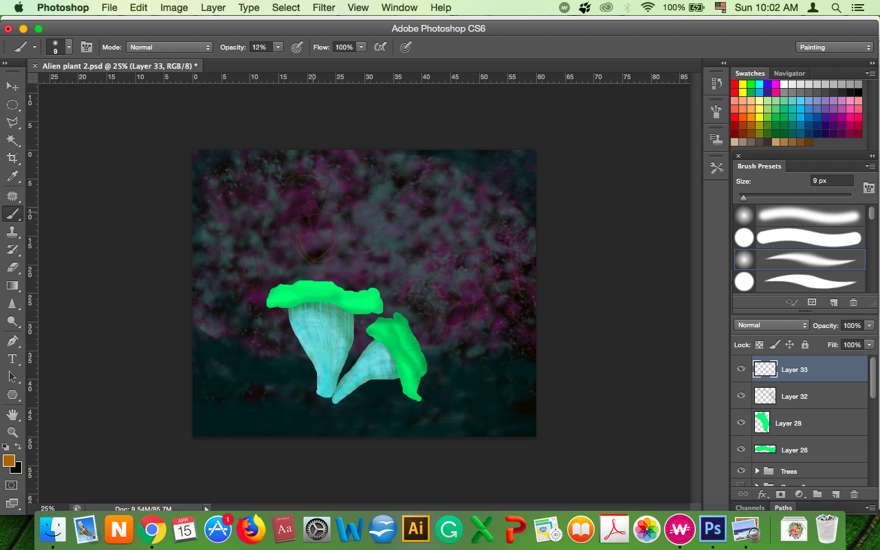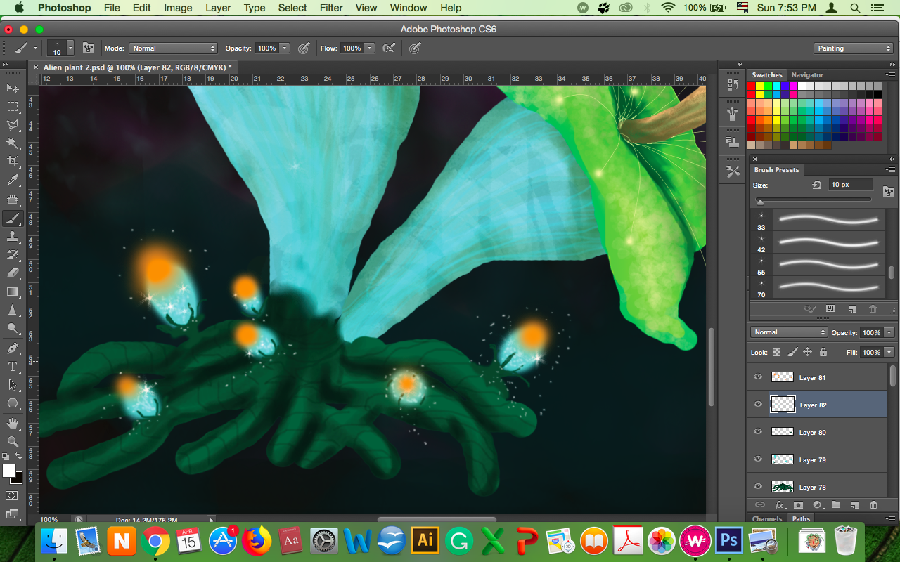 For the highlight, I used Brush Tool and Soft round pressure size tool with 12% of Opacity.