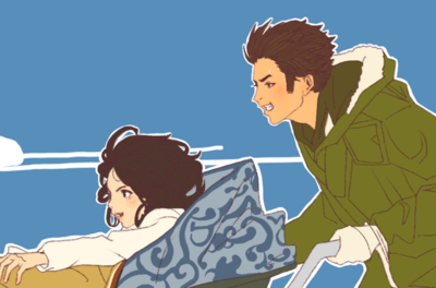 두 주인공이 함께 달리며 즐거워하는 장면이에요^^