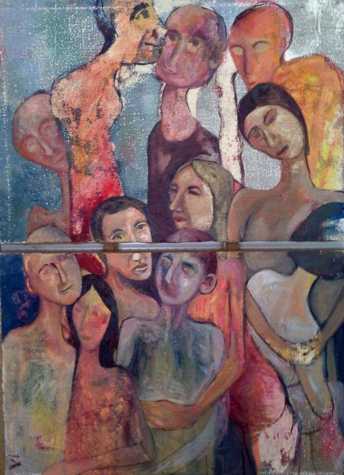 Hugsmesha (48)in #art • 5 years ago Hello everyone! One of my paintings, made 10 years ago. It's called "Hugs". Hope you enjoy it. 200cm x 100cm acrylic painting. #painting #artist #photography