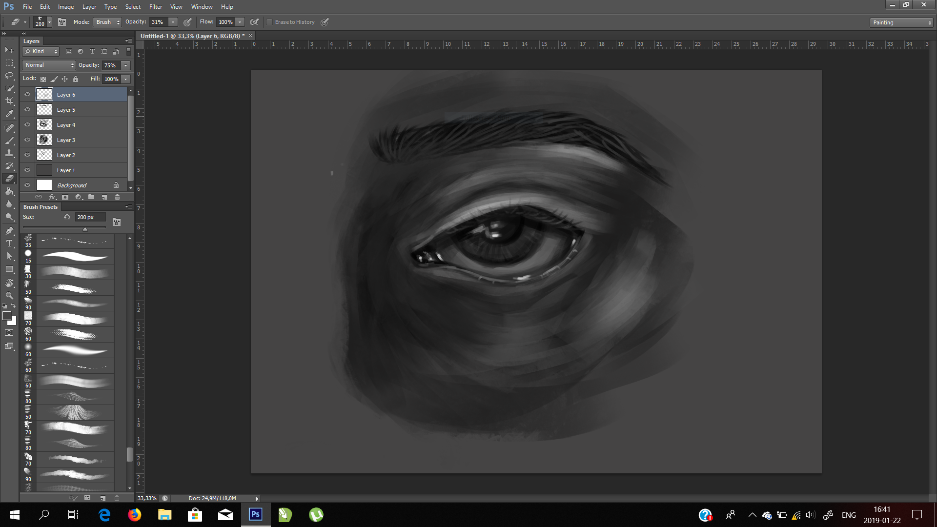 Eyes is one of he hardest things for me to draw. All the emotions coming from the eyes… it's very important for me to learn how to manipulate shadows light and eye shape from different angles. And the result I think is pretty good. So this is my work step by step.