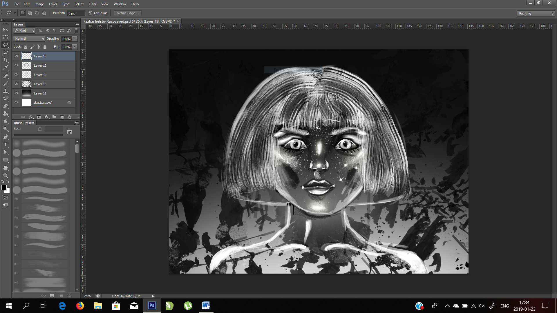This drawing I started with fading backround and human siluett sketch. In the beginning I really didn’t know what im going to make out of this drawing. My intention whas just to experiement with something new.