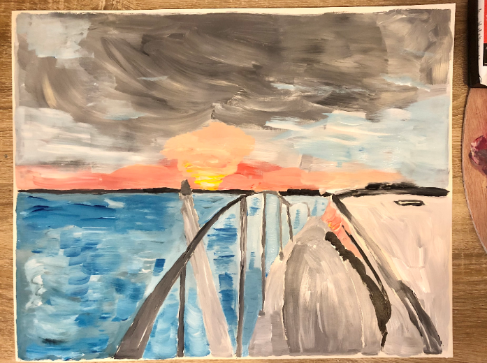 Then, fast forward one month to last night and I am flipping through my phone in boredom and came across the photograph. I decided to do a painting to commemorate the experience, done in acrylic paint and on canvas paper as those are the only materials I have at this moment. As I've done in the past, now I'd like to share a bit about my artistic process with you guys, so you can see how I work: