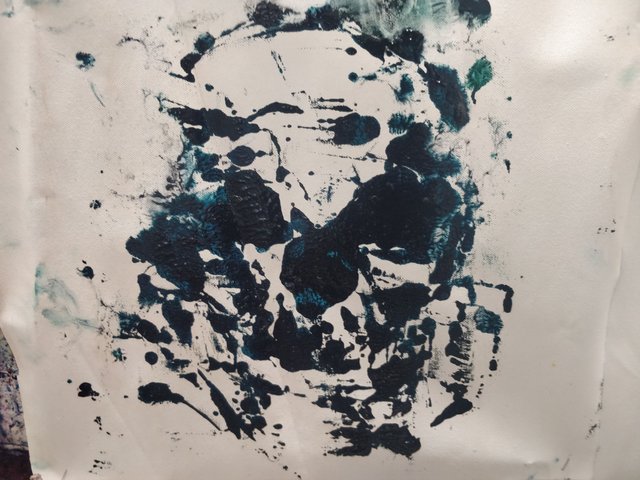I mixed it all together. I had few left over pieces of preprimed canvas, though pretty damaged. Suddenly i was in the realm of monotype.
