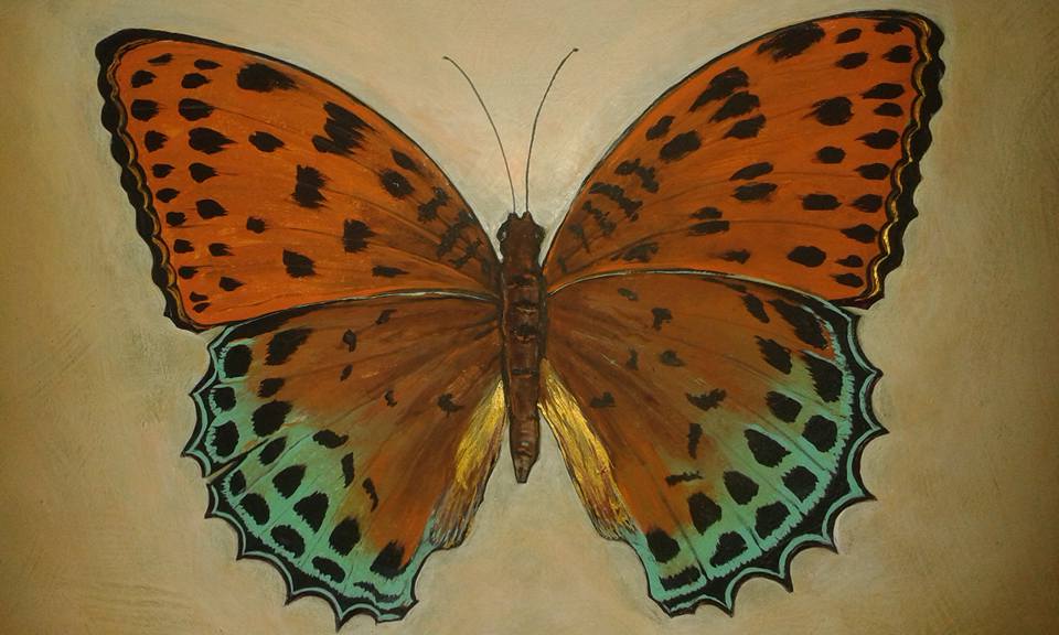 Les dejo la imagen de una mariposa que pinte con acrìlicos sobre madera.