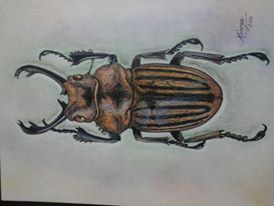 Por el gusto que me ocasiona dibujar y pintar los maravillosos y pequeños seres que habitan nuestro planeta, hoy les voy a exponer un coleòptero pintado por mi, utilizando cartulina con textura fieltro, y polychromos FABER CASTELL .