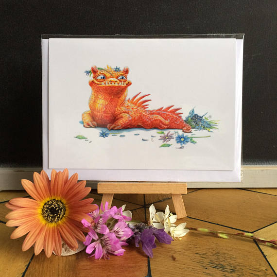 That is really cool. Orange is my favorite color and this little dragon is awesome. Do you have "art" too? Or do you just go with the greeting cards? I'm not currently in the market but when I become a crypto millionaire I could see myself decorating a room with some medieval/dragon stuff. :-) Keep up the great work!