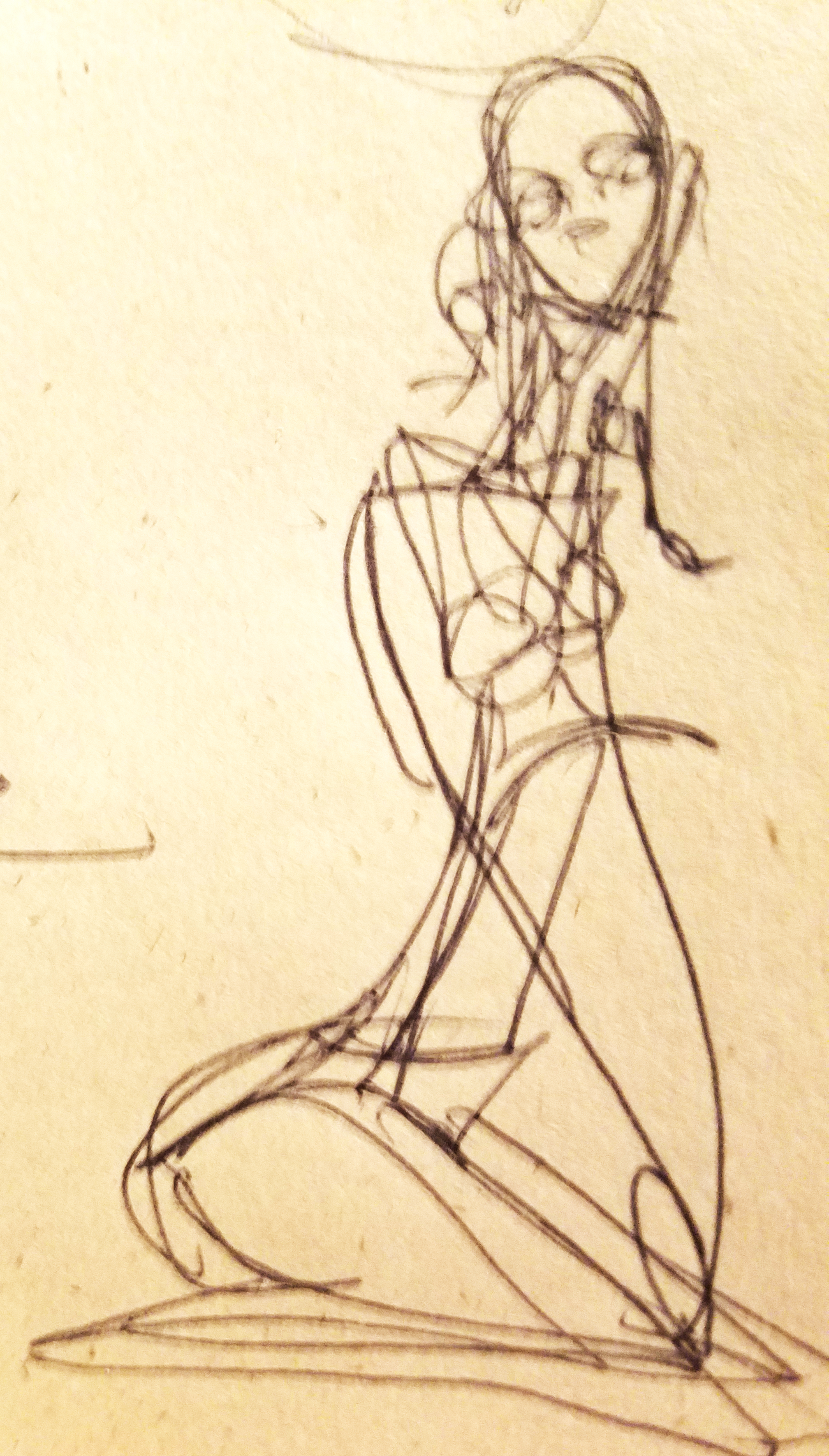 Here is the sketch I made that both represented the model appropriately and complimented the other works that may accompany it.