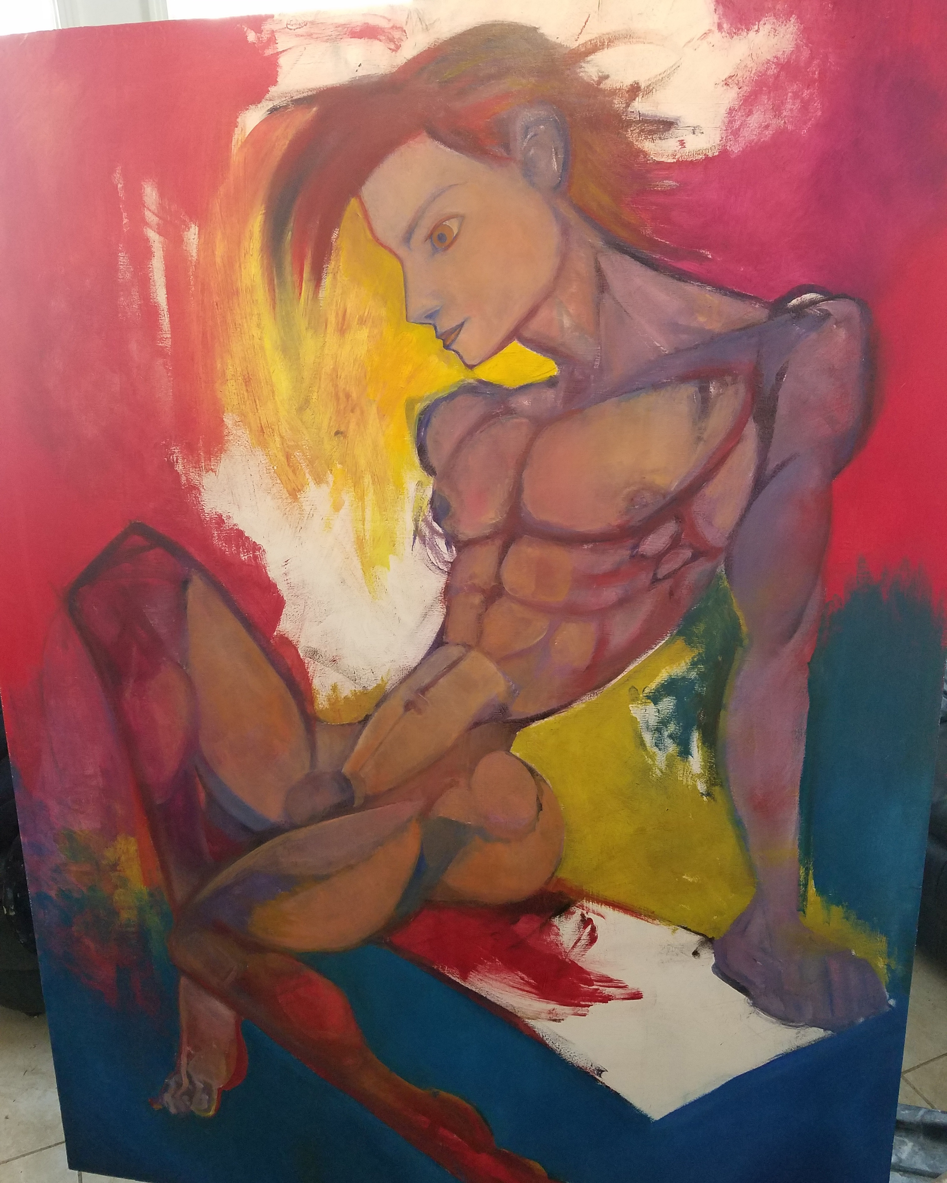 Figure Painting Start to Finishmorangallery (56)in #art • 7 years ago This is a detail of a finished oil painting. The photo set will reverse to the first sketch. Here is the full painting: This painting is oil on wood 48" x 36" inches. #painting #figure #male #oils