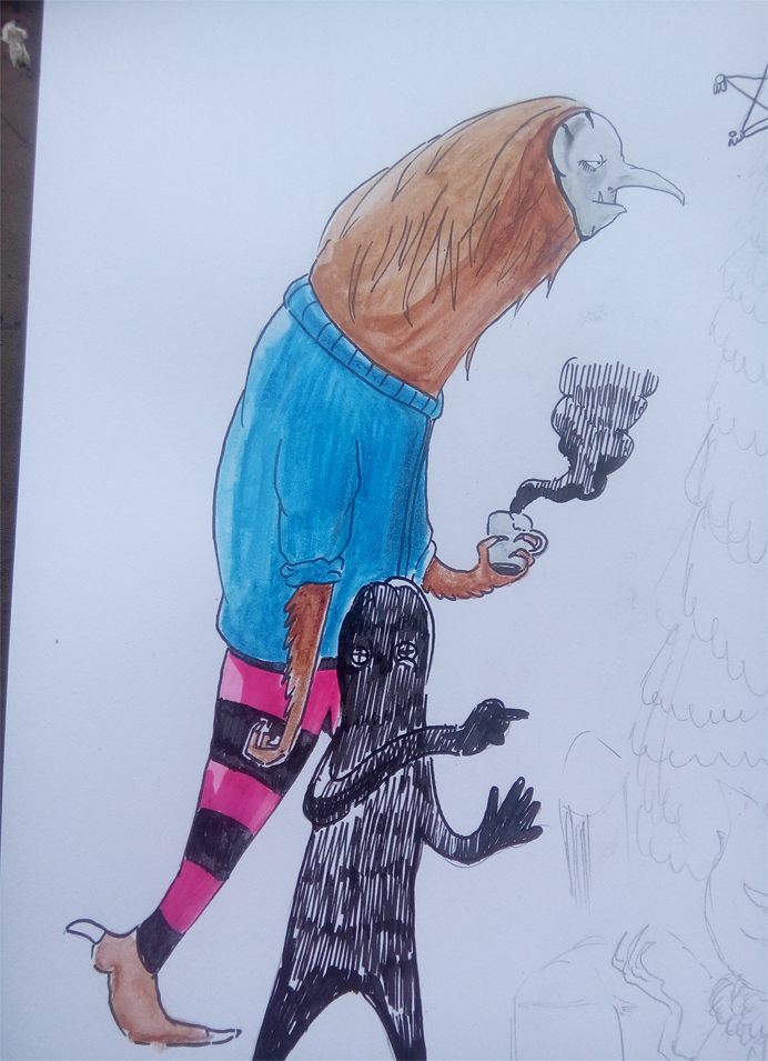 Then I went into inking the troll with a mug of chocolate.