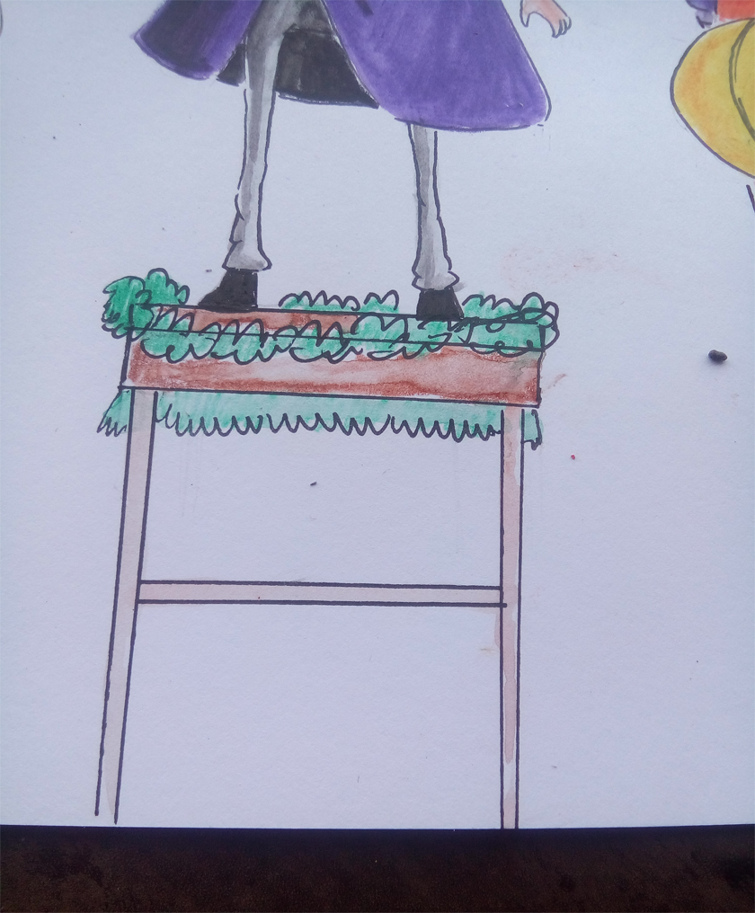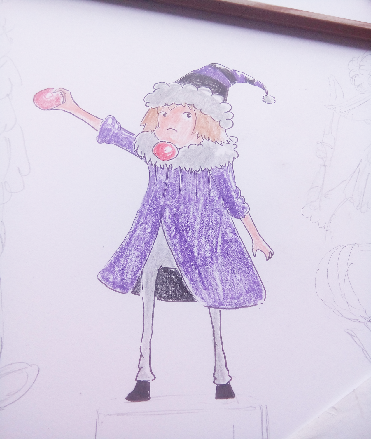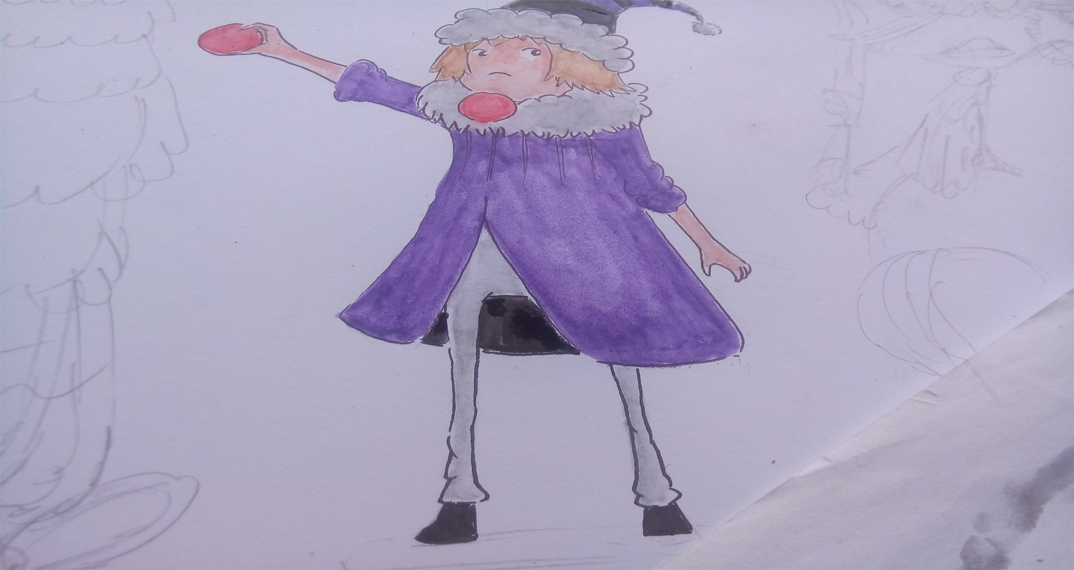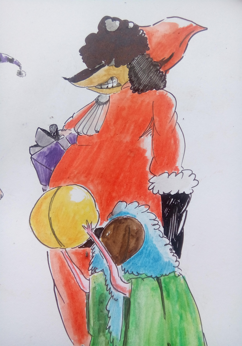 I colored the boy with starting from the hat with black and purple.