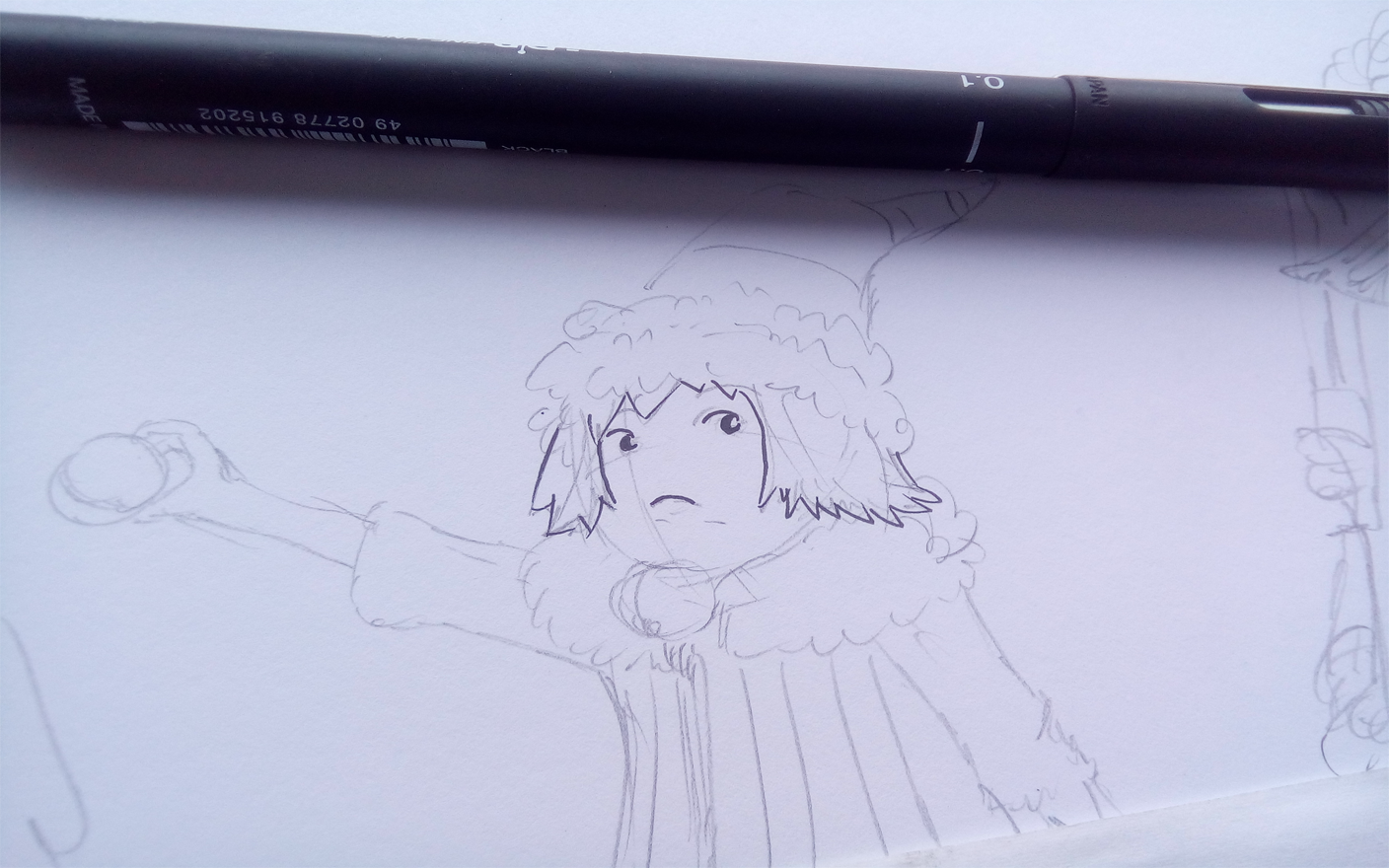 Then, I started with the boy in the middle. Why? I just felt to, don't know why but I just wanted to start with the kid with a Christmas ball. At times that you will do a colored plate, one of the most suggested lining tools are pigmas since they're very simple(line wise). Some really good artists like Eiichiro Oda(One Piece) do color their works and line it with the common Saji , G-pen and Maru pen. That's some advanced skill to tell you. Even I, after many years of working with colored works takes a lot of time in working with those pens when doing colored plates.