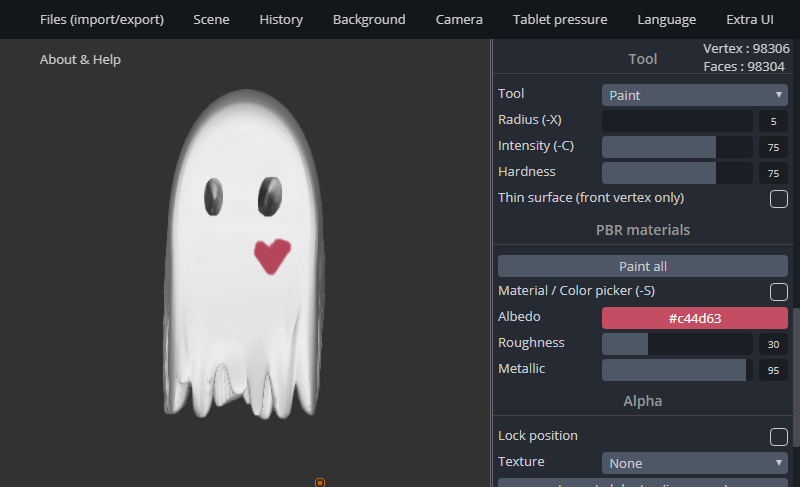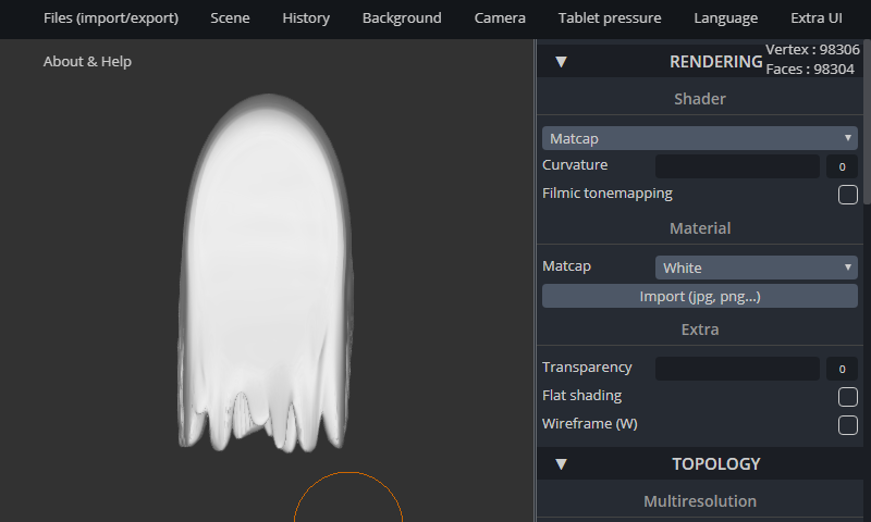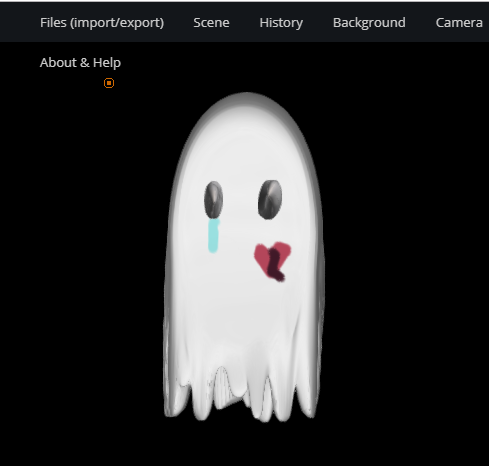 I tried to sculpt a 3D render of my ghost! This time it actually looks 3D unlike my first attempt c: My first attempt was created in a website called Tinkercad. This attempt was created in SculptGL. I will show my process in making this 3D sculpture for you all to experience the full Spook!