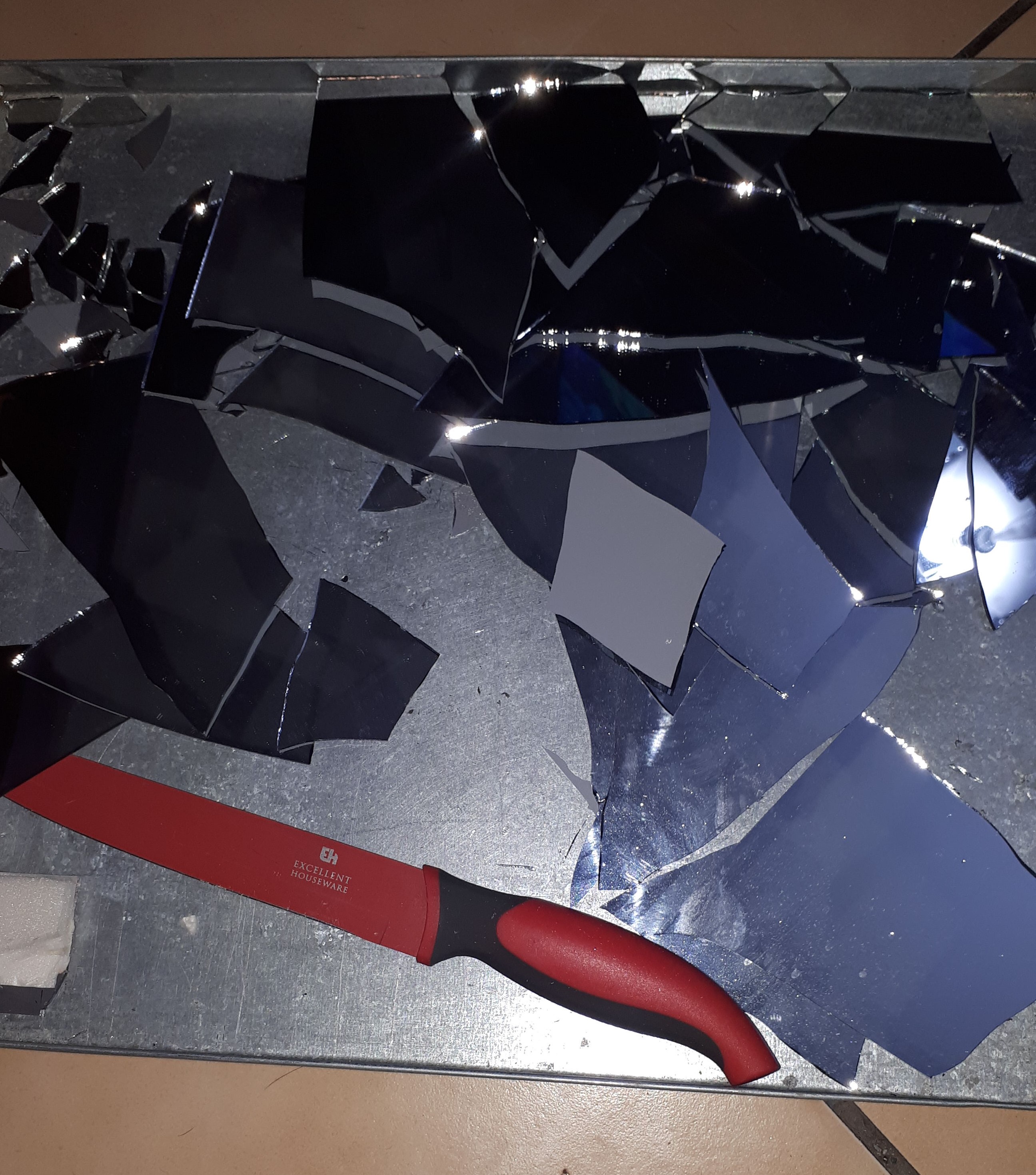Here you can see she was chilling out one evening cutting her mirror pieces whilst watching her show..