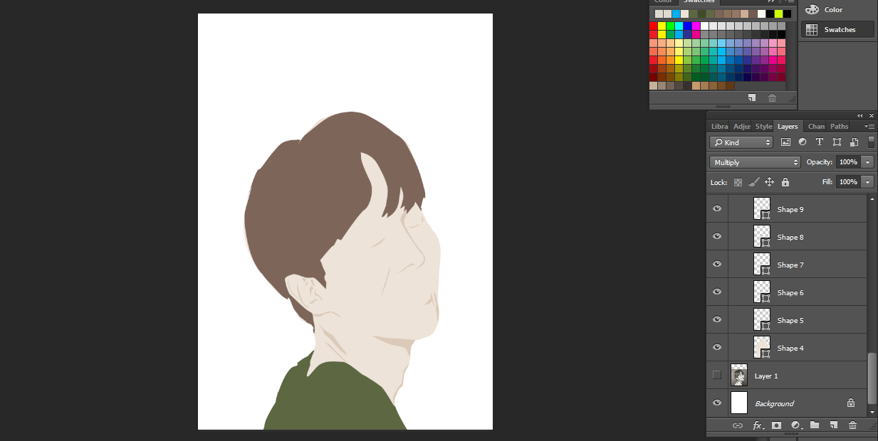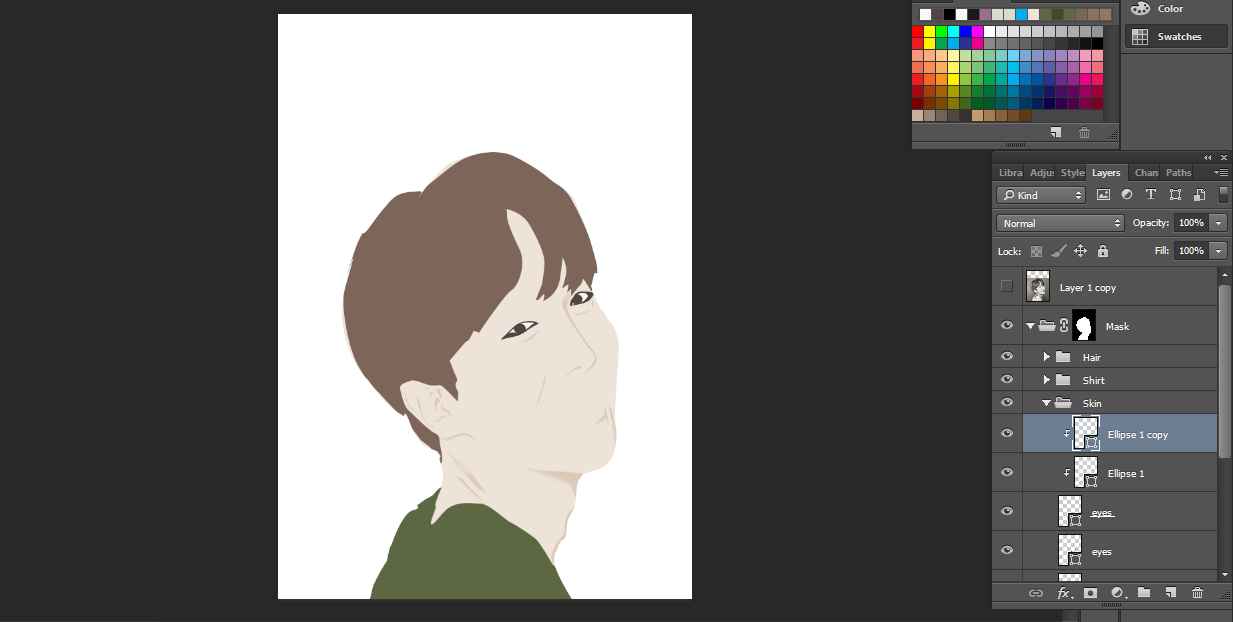 I had already drawn his face before I thought of taking screenshots, so apologies for that part.