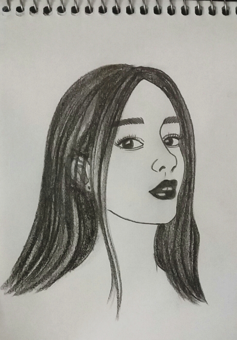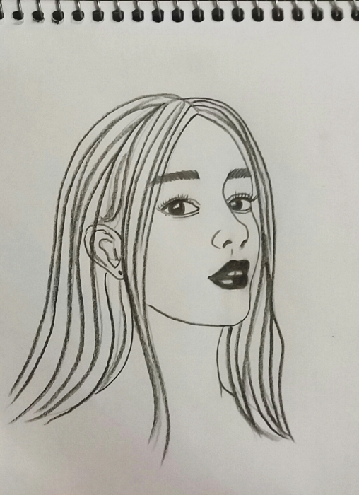 my black pencil drawings, for today I have a new one, I drew another beautiful girl with long hairs Xx