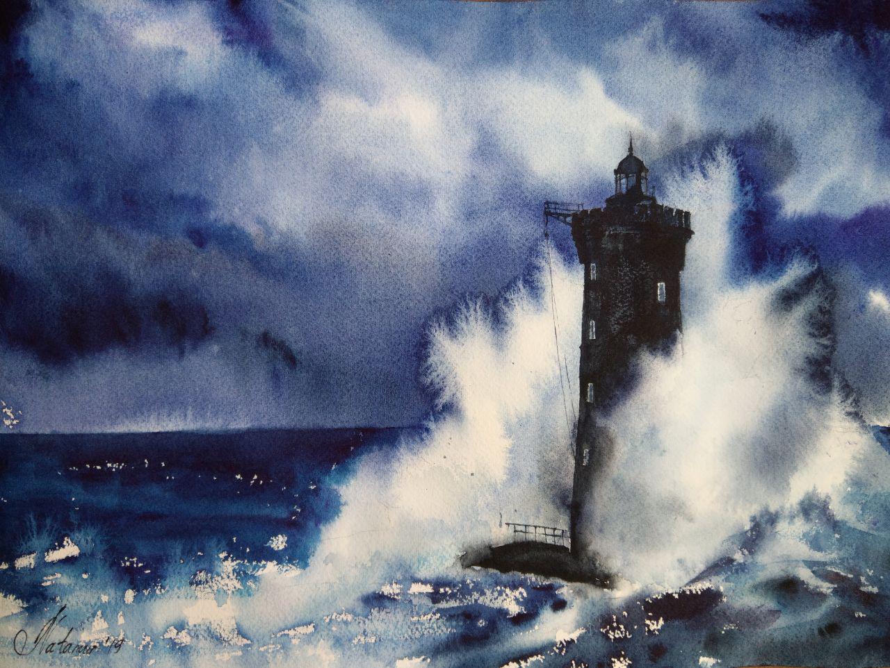 I still love lighthouses and storms so I took an attempt to draw it in a different way. So, here is another lighthouse in the storm 🌊: