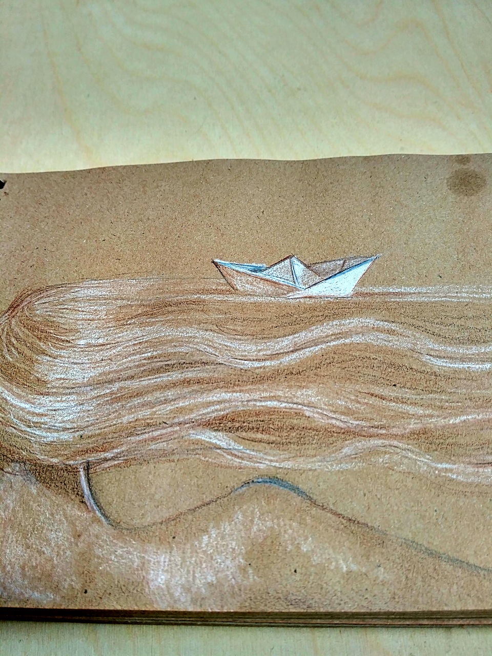 What a stunning work, I love how the little boat is cruising along the girl's head! Lovely concept.