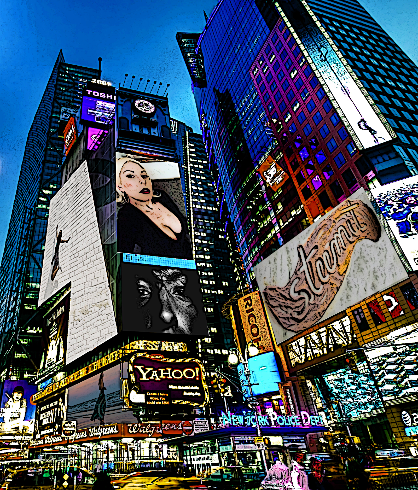 I have done a series where I put the work of fellow Steemians in the spotlight, by doing my cartoon art thing on them and place them in a gallery or billboard setting.