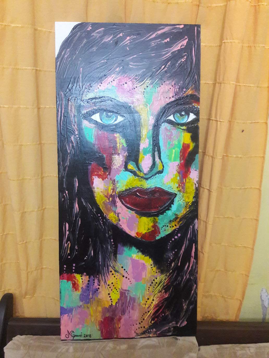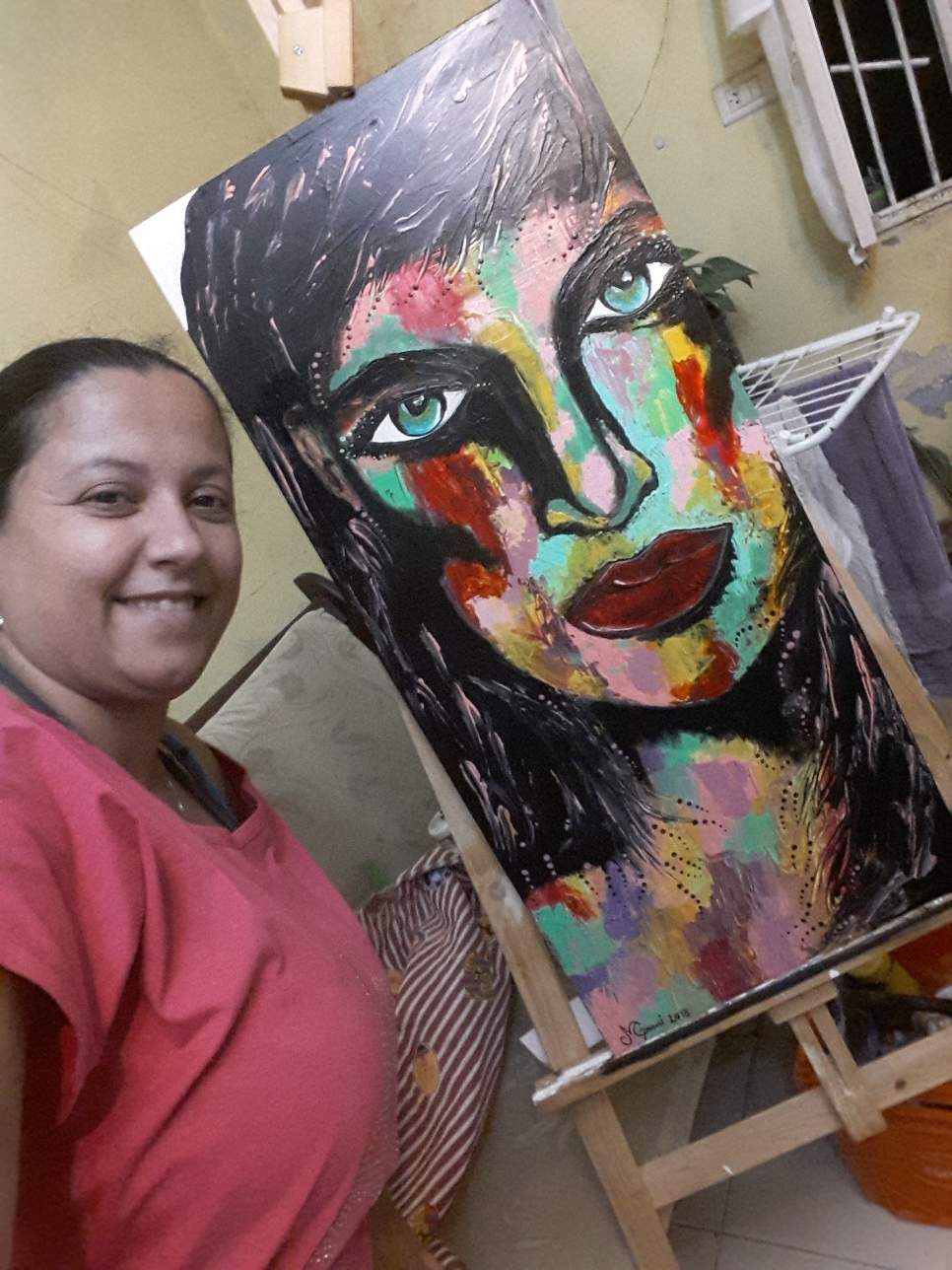 en este caso quiero mostrarles a Lady obra que hice espatulando acrílico sobre MDF, el año 2018.