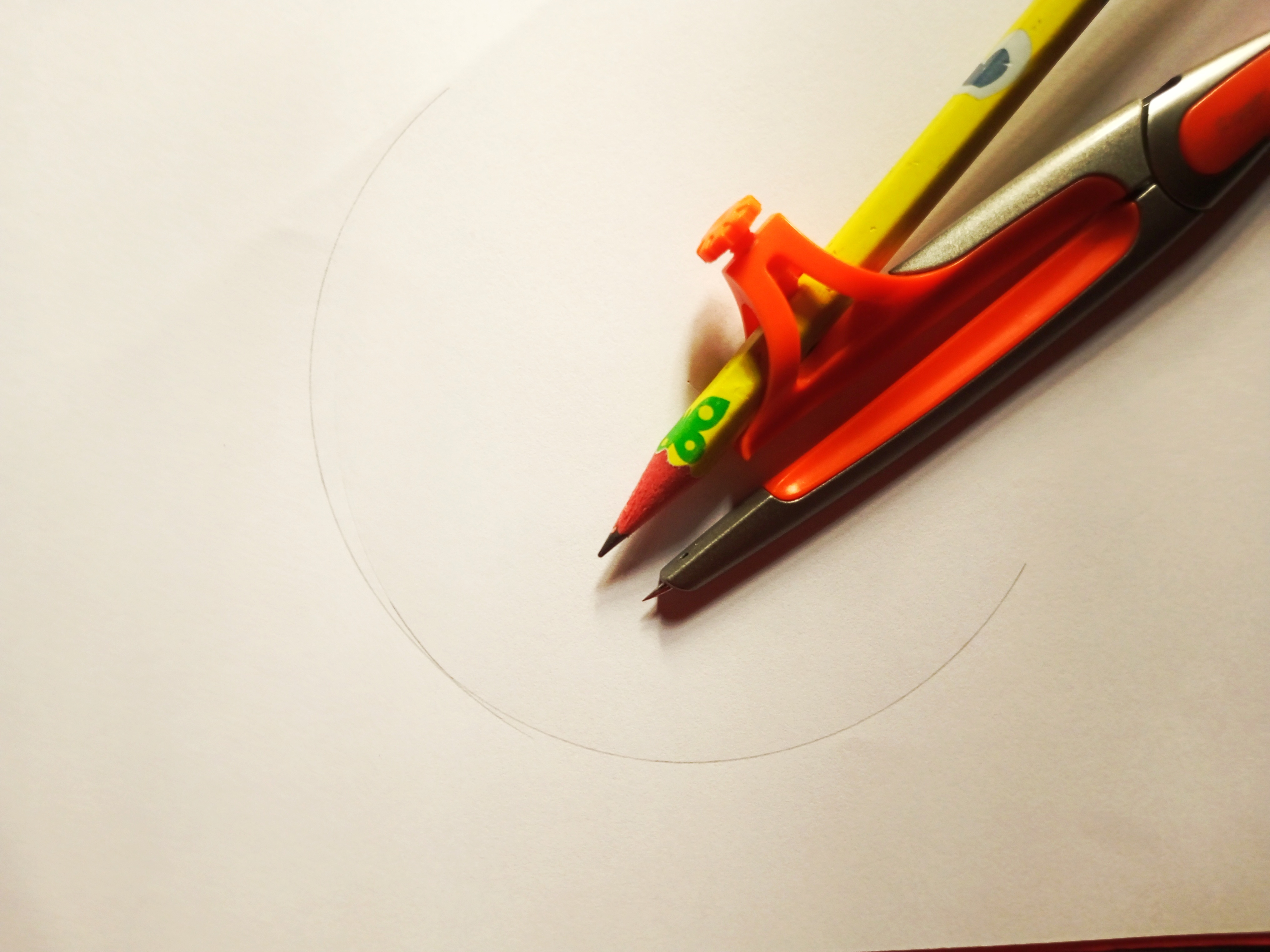 প্রথমে কম্পাসের সাহায্যে পান্সিল দিয়ে অর্ধবৃত্ত আঁকিয়ে নিবো।
