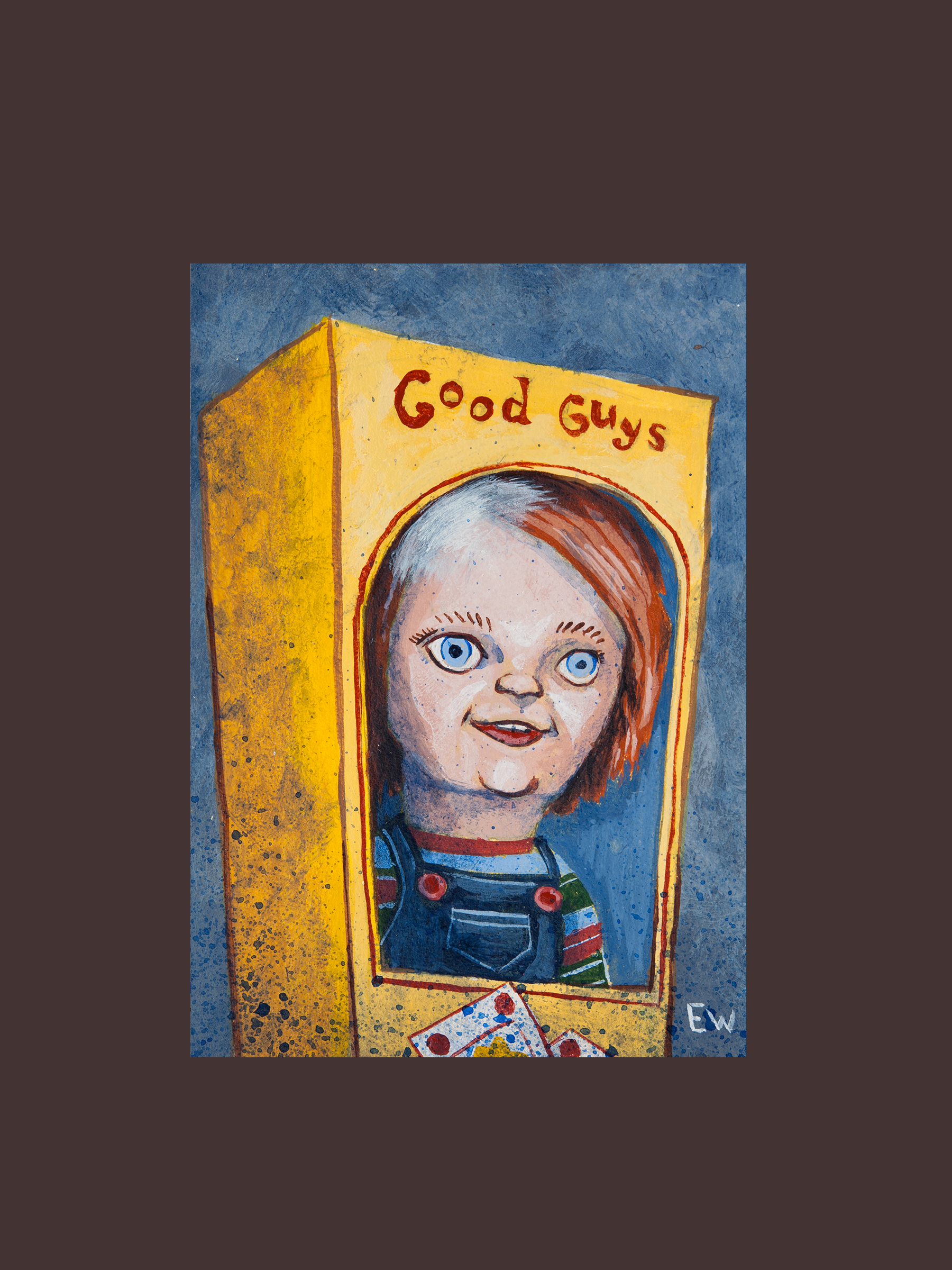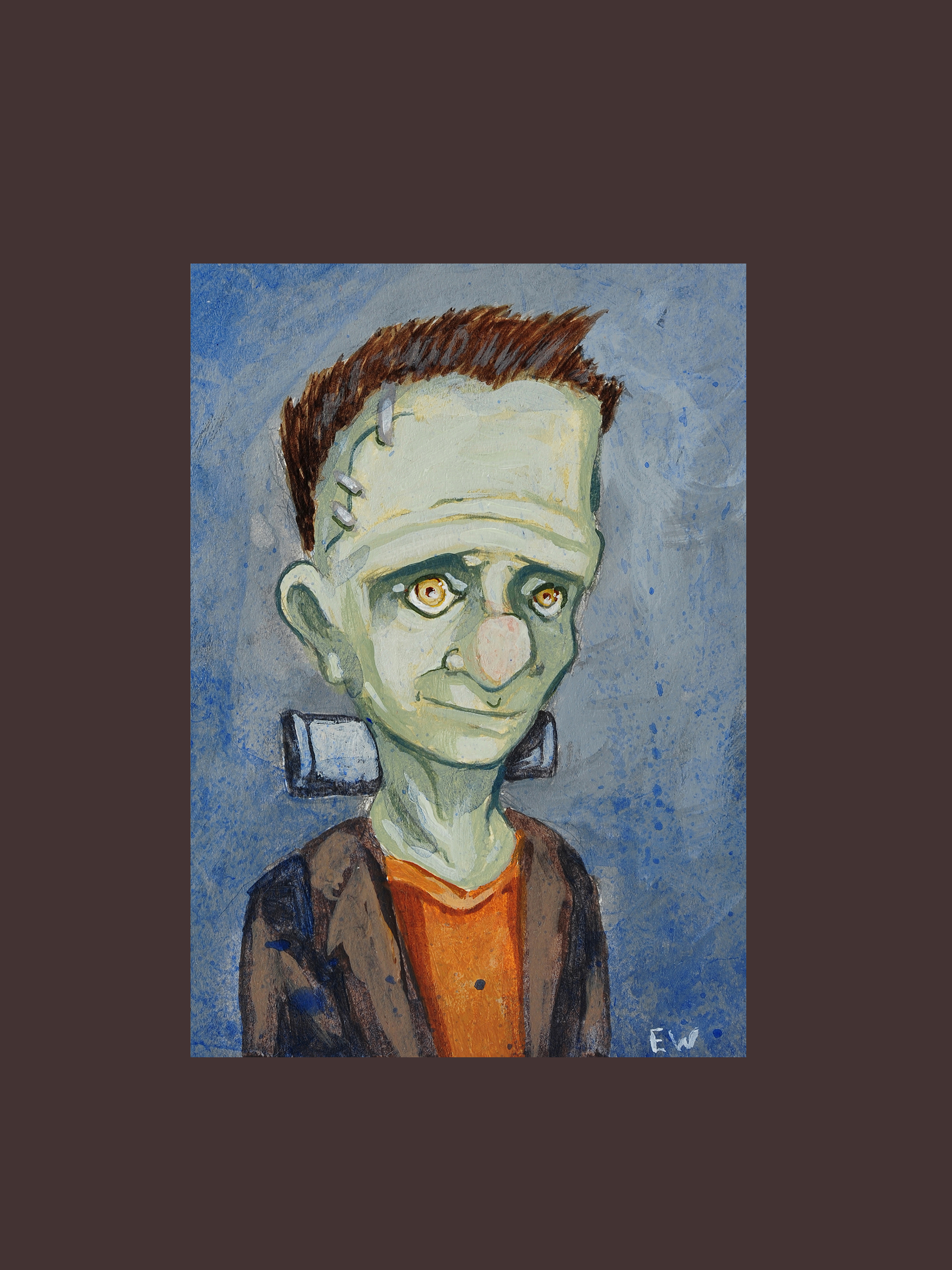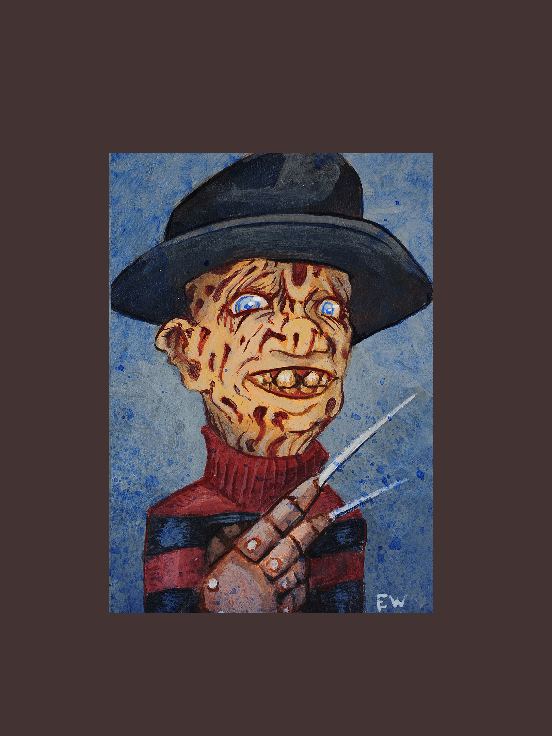 These pieces were created after my son got his second grade year book and i got the idea to do a version with some of my favorite monsters and villains. I did 27 in total here are six of them. They are Liquid acrylics on 3"x4" illustration board.