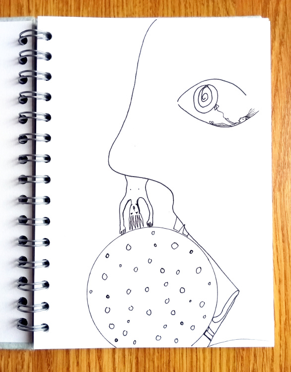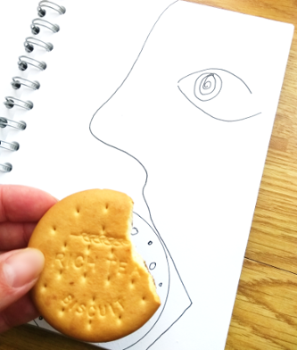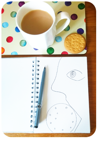 After I had finished my cup of tea I added a few more details to my doodle, it looks like this biscuit eating character has a few more friends to help with the biscuit eating. So that is why the biscuit packet is empty!