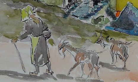 The old granny walking with her goats is wearing the usual headdress of the Burgundian women. She tends to her goats all day and speaks only the patois/dialect of her village. Today, the use of this "patois" is slowly disappearing with the passing of the older generations.
