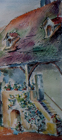 I have noticed that my great-grandfather has accumulated quite a lot of paintings, both watercolor and oil paint, depicting Burgundian houses of his own village as well as the surrounding ones.