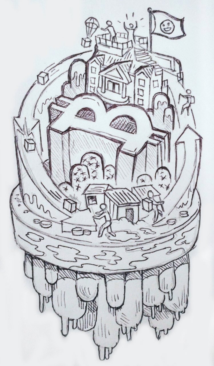 I spent over another 2+ hours and now I have arrows, a BTC, path way to the BTC (with steps) and mountains! Next up, trees, clouds, and small houses. Everything gotta stay clean and geometric. If I slack off, everyone will notice, so the pressure is ON!