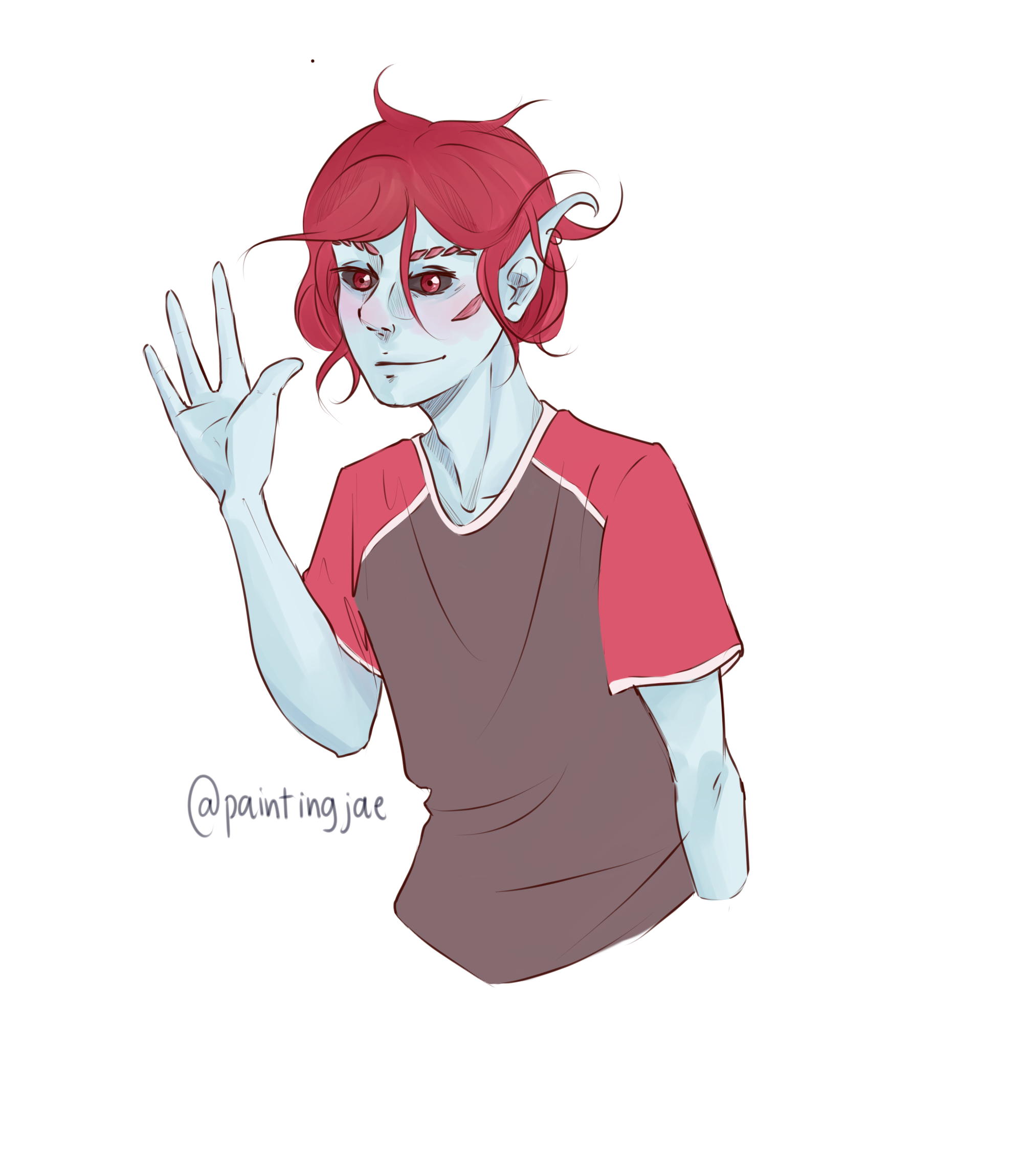 Hello! Today I'm showing you my OC, Eer, an alien from another galaxy. I still haven't figured out their backstory very well, but I can give you a few facts: they have floating hair, four fingers per hand, and no concept of gender whatsoever. He sees us all as just humans with different physical characteristics.