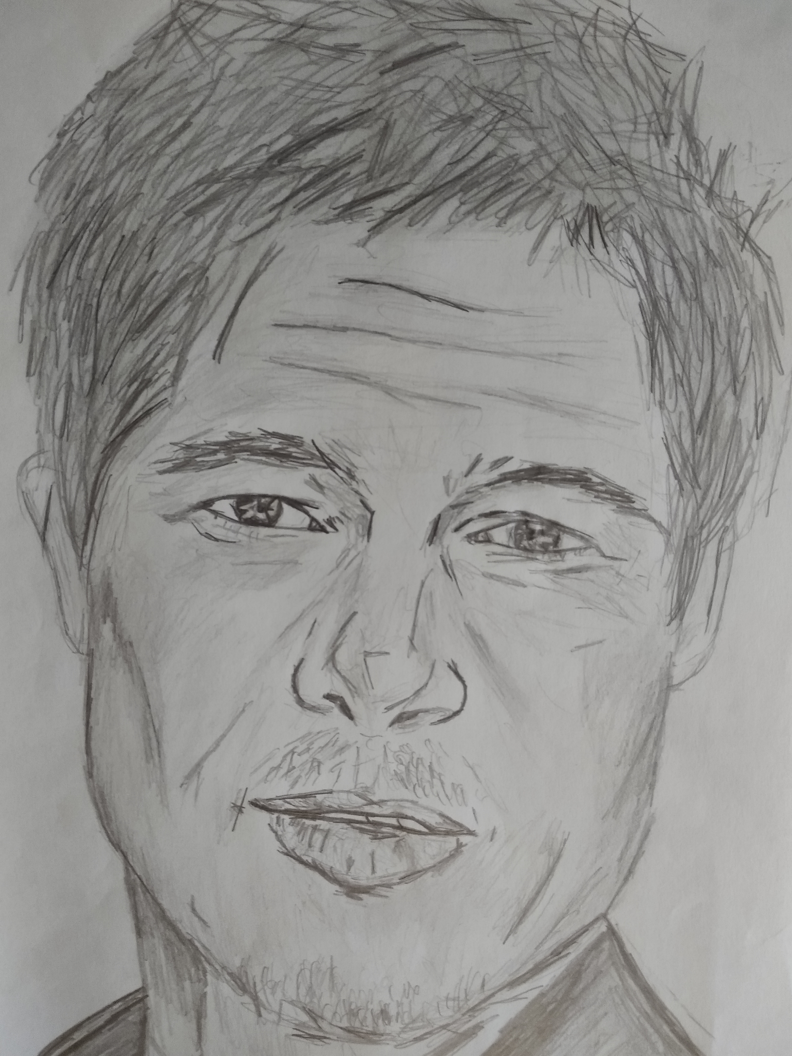 Drawing a portrait (02)pattrycia (47)in #art • 6 years ago Hello everyone! Today I want to show you a portrait of Brad Pitt The portrait is made with a simple pencil in a-4 format. Hope you enjoyed my post. #artzone #art-venture #creativecoin #palnet #drawing #sketching #portrait