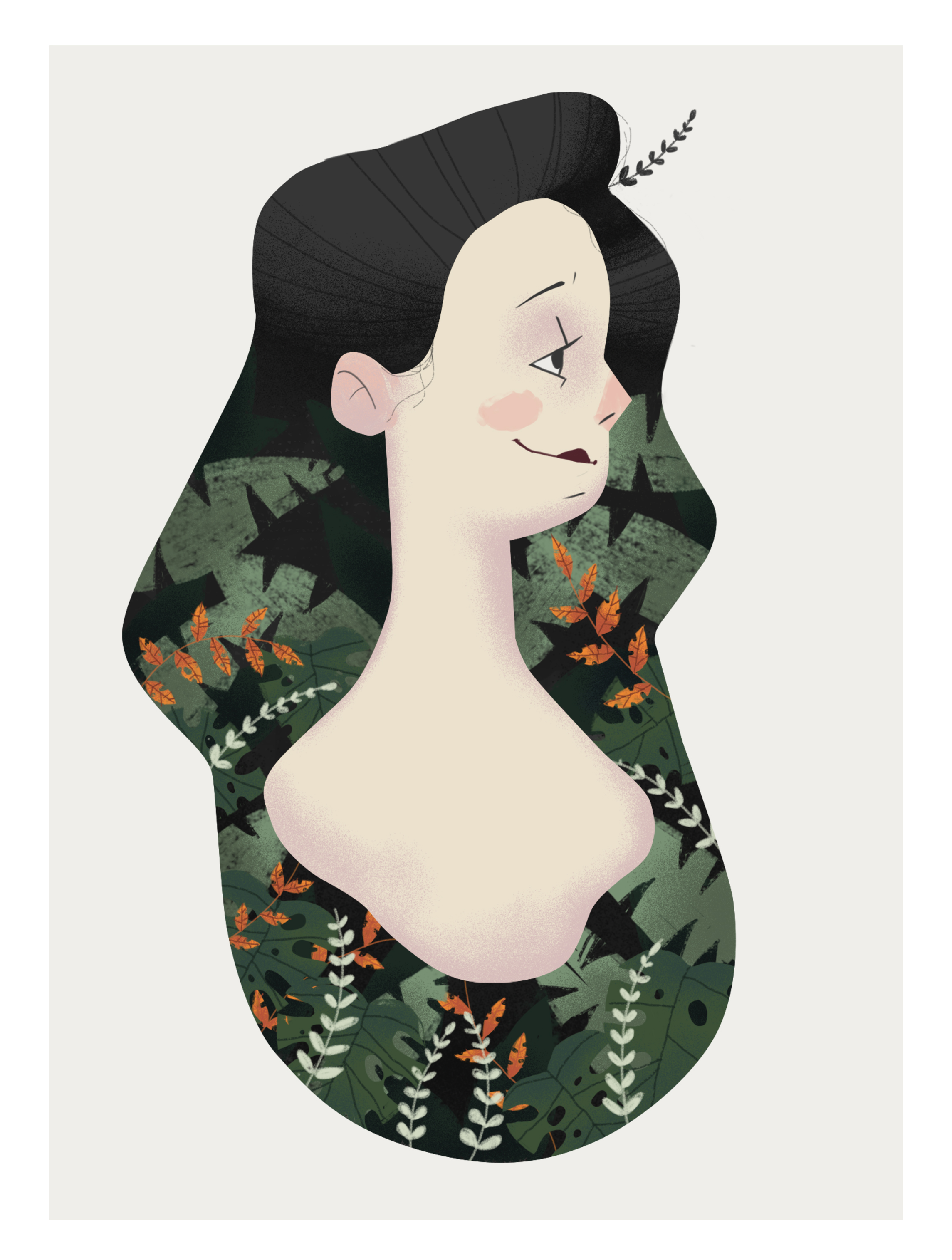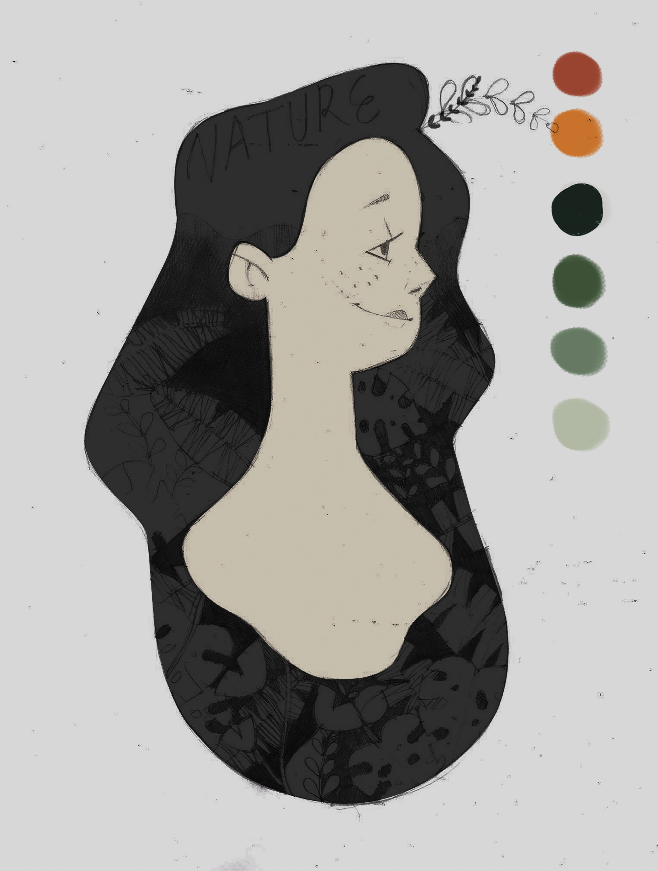 Here I wanted green and orange tones as the base color for the illustration, for this reason I searched Pinterest for color palettes to be able to implement it in the design. This was the image I chose, the tonality used in the image enhances all the elements of the composition.