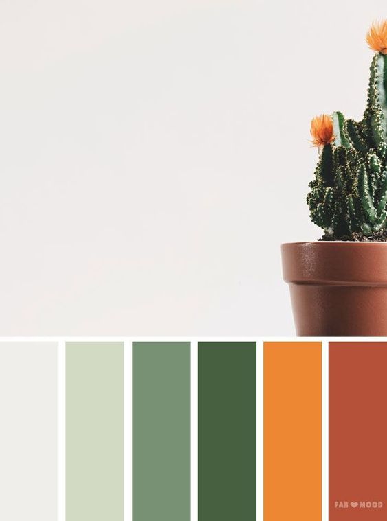 Aquí quería como color base de la ilustración los tonos verdes y naranjas, por tal motivo busqué por Pinterest paletas de colores para poder implementarlo en el diseño. Esta fue la imagen que escogí, la tonalidad que se utiliza en la imagen realza todos los elementos de la composición.