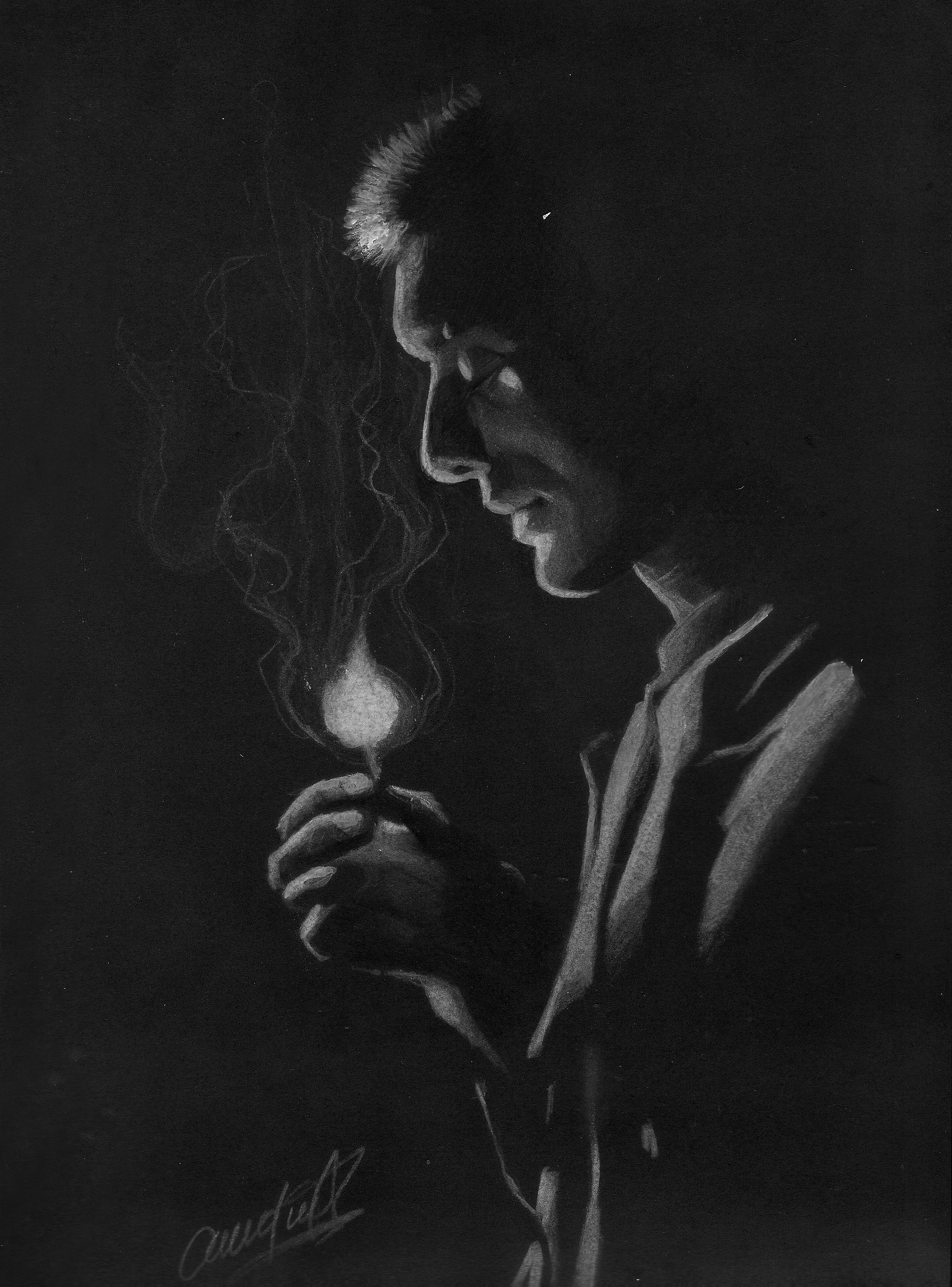 Portrait black background with white pencil