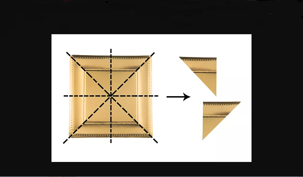 cut your paper plates into 8 pieces like the picture below to make small modular triangles