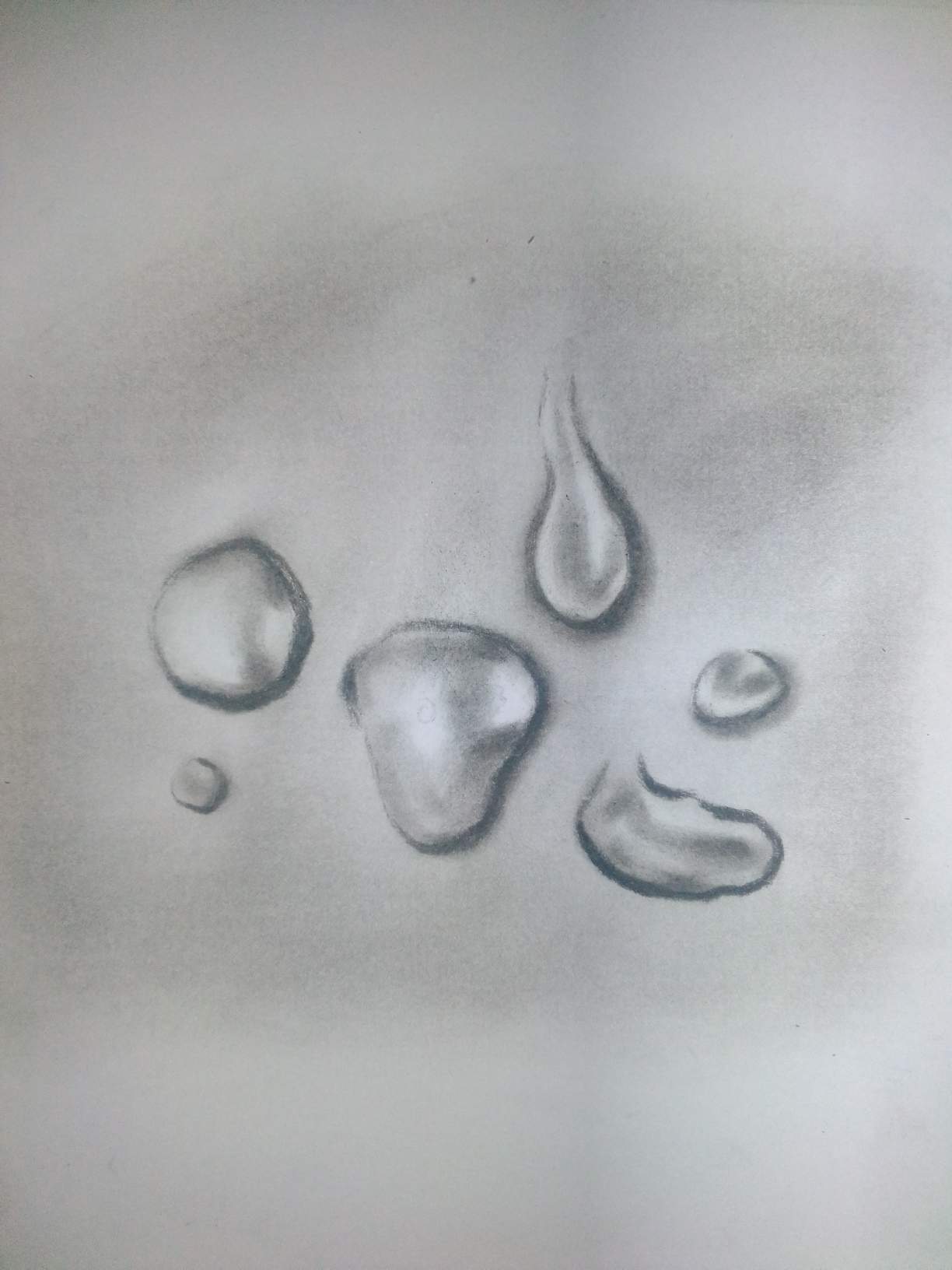 Finally, I used my white charcoal pencils to add more highlights to the water drops to make them look more realistic and also enhanced the outlines using my black charcoal pencil.