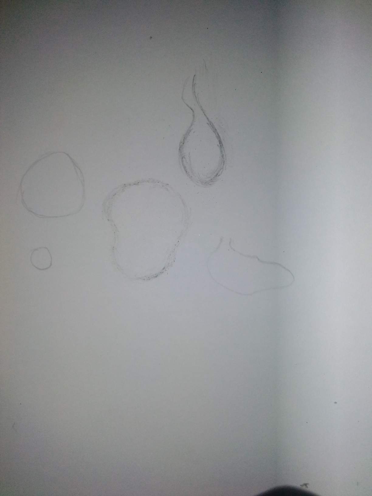 First, I sketch out the drops of water with my HB pencil. This will help as a guide when I start using the charcoal pencil.