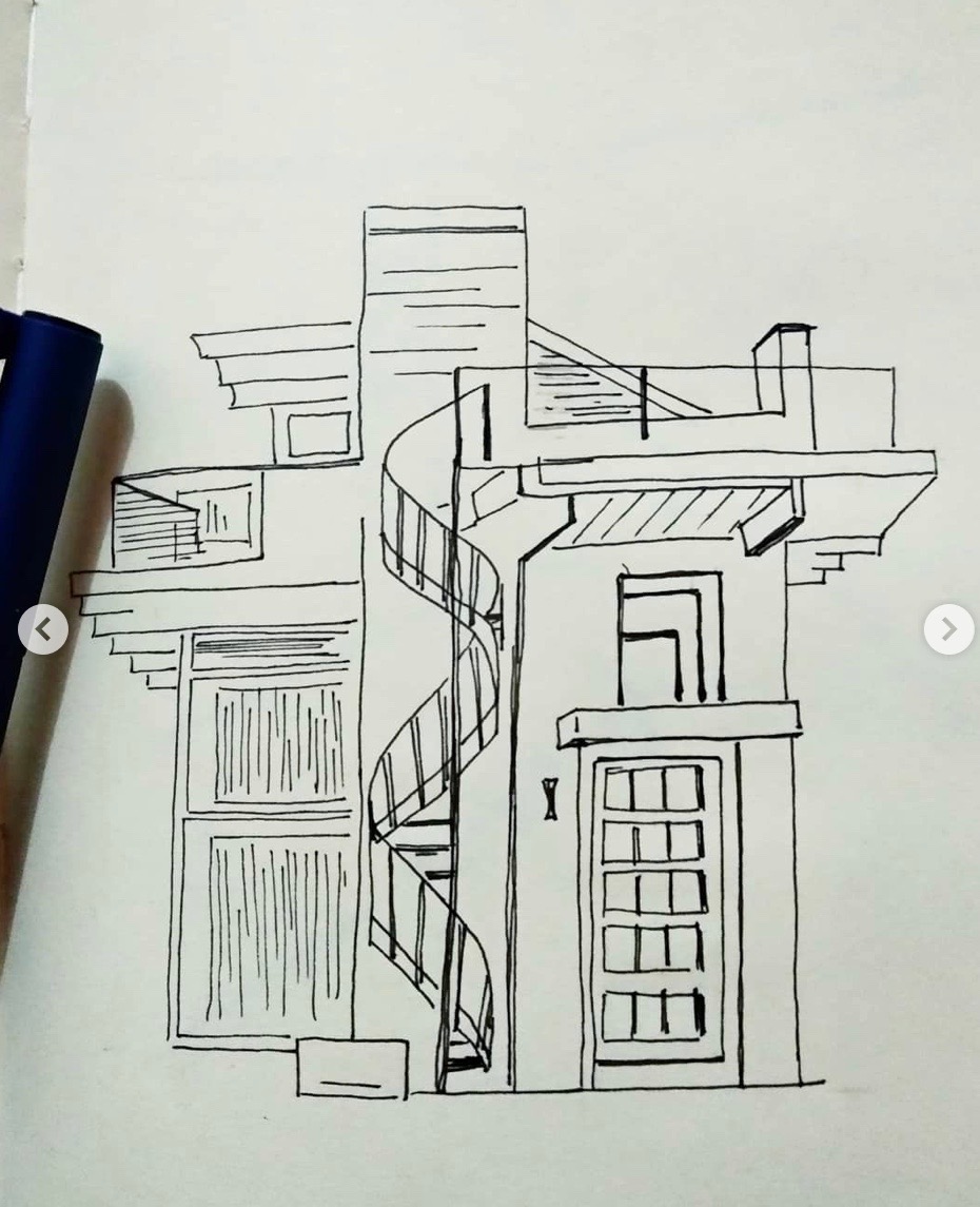 Found the original picture online, the building was so elegant, with the stairs outside. I thought it would not be a good idea drawing something so architect. Especially with the existence of the spiral shape of the stairs.