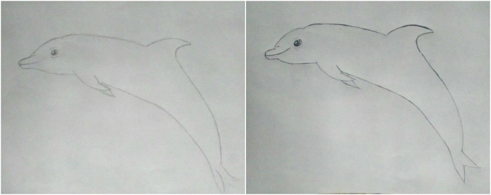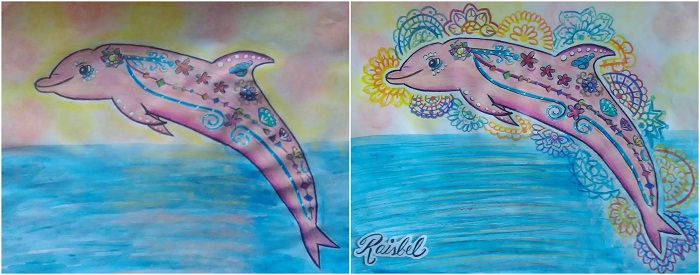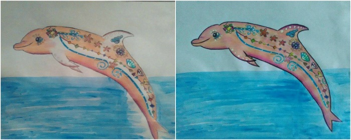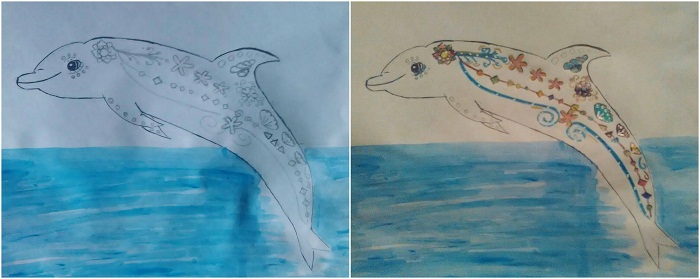 Then I drew details to the dolphin, and I painted the water.